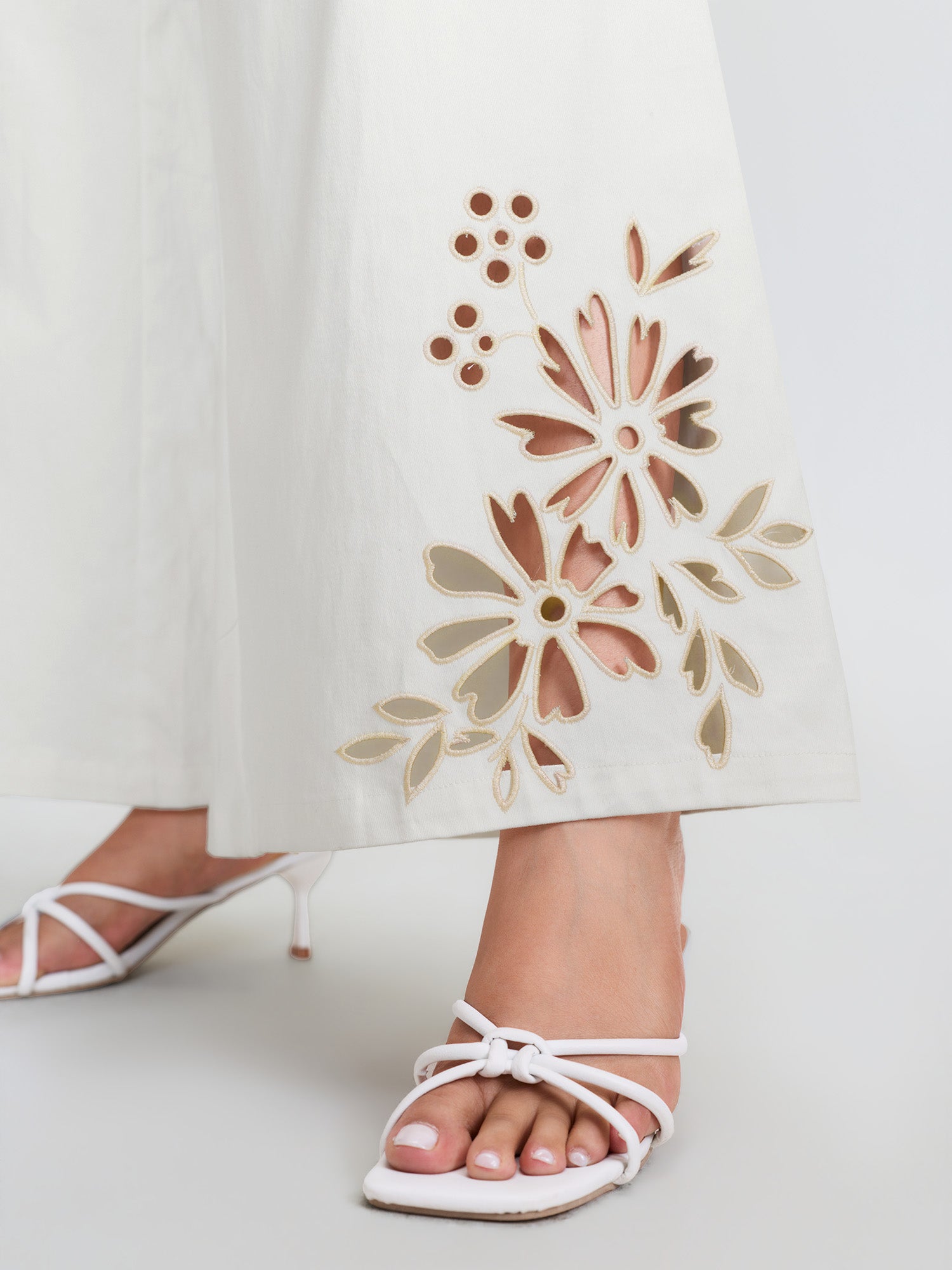 Floral Cutwork Embroidered Hem Pants