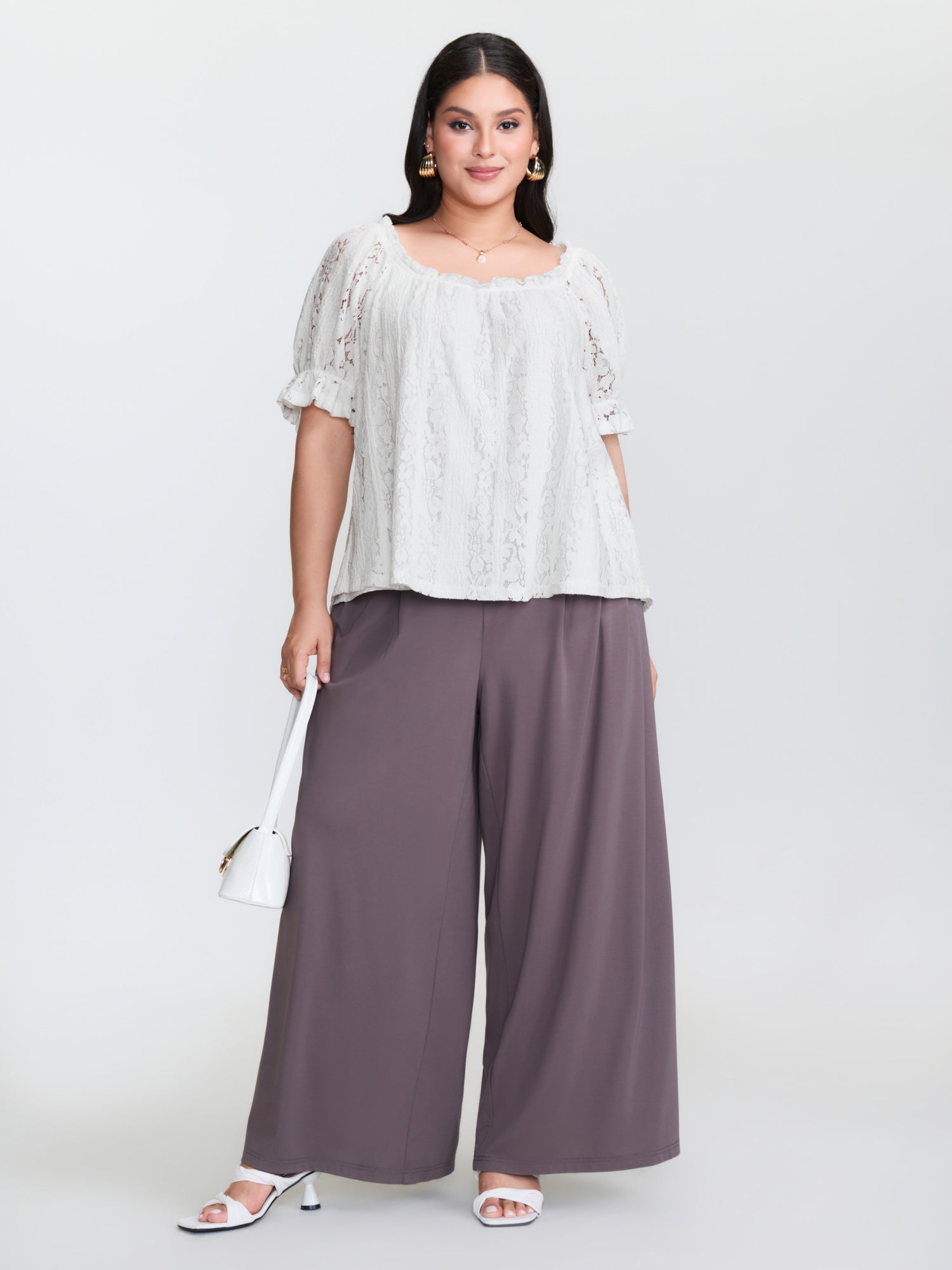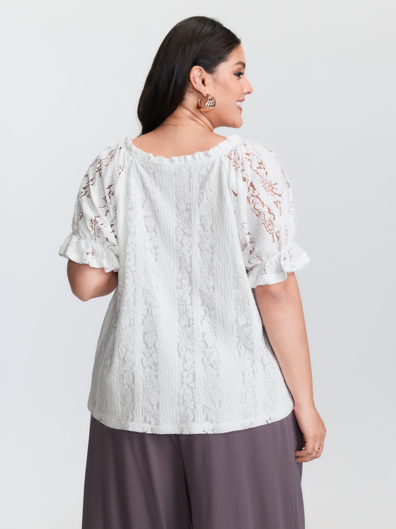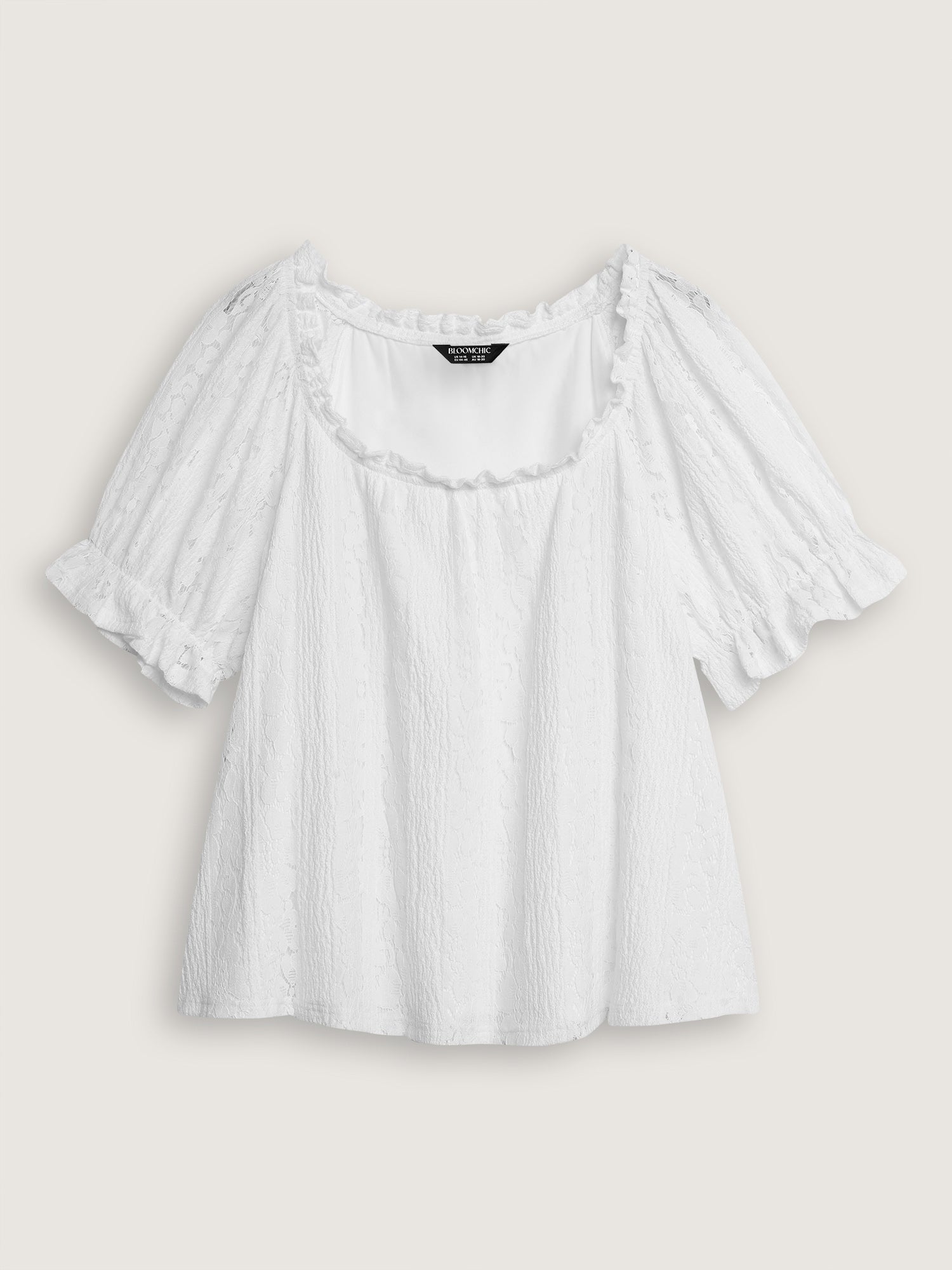 Shop Sheer Lace Panels Ruffled Neckline Blouse now and redefine your style with confidence at BloomChic. Tailored for mid and plus-size women. This trendy Tops Women, sizes 10-30. Color:lvory;Style:Romantic;Prints:Synthetic texture;Neckline:U-neck;Sleeve Type:Lantern Sleeve;Details:Gathered, See through;Pocket:No-pocket