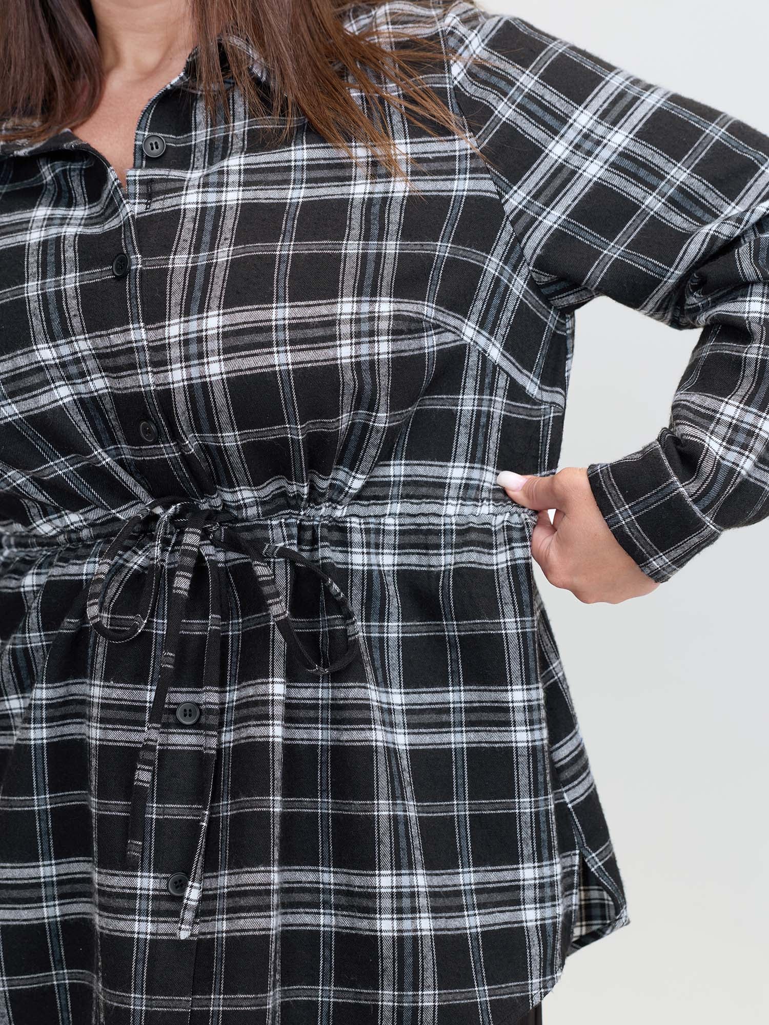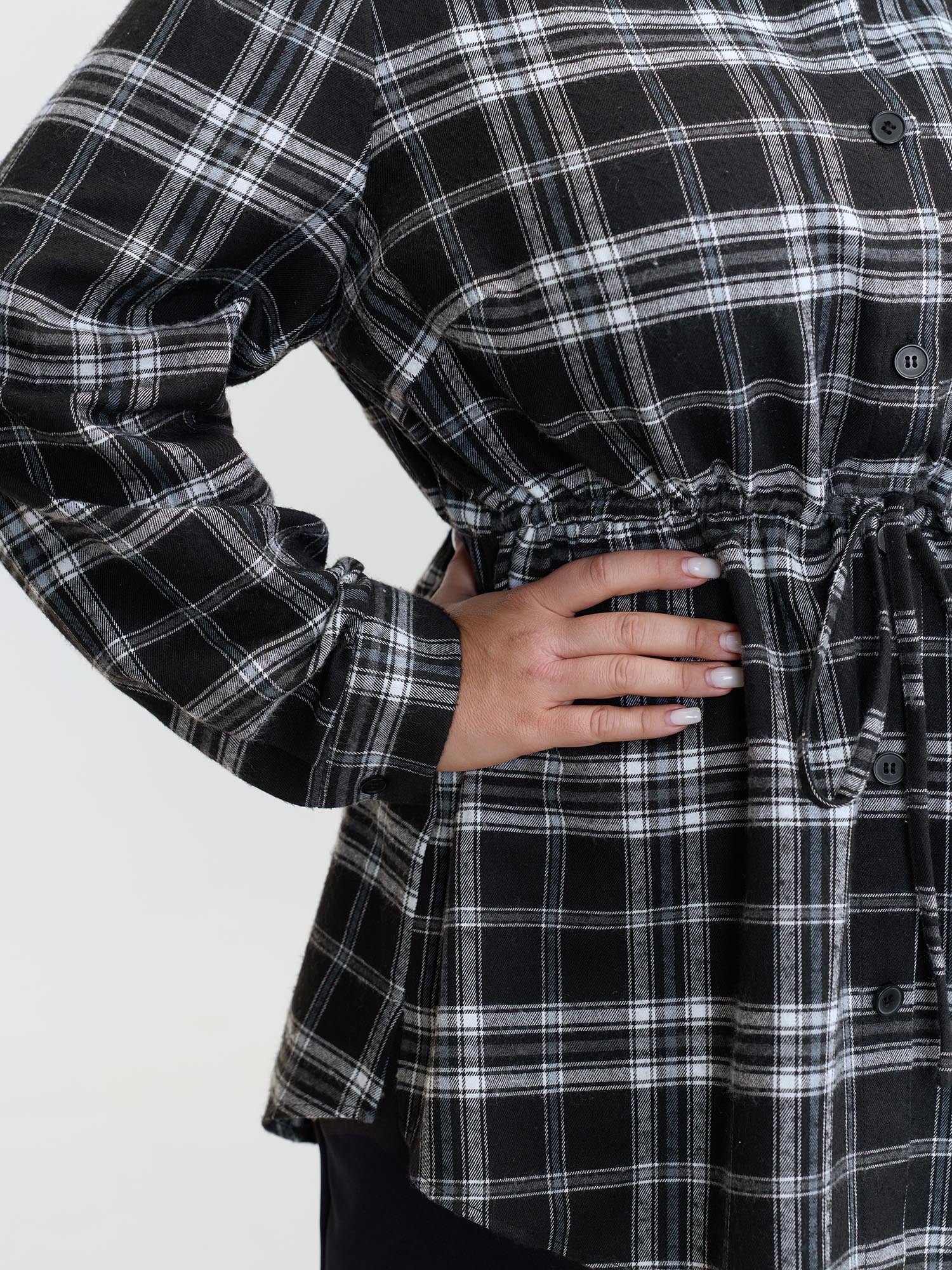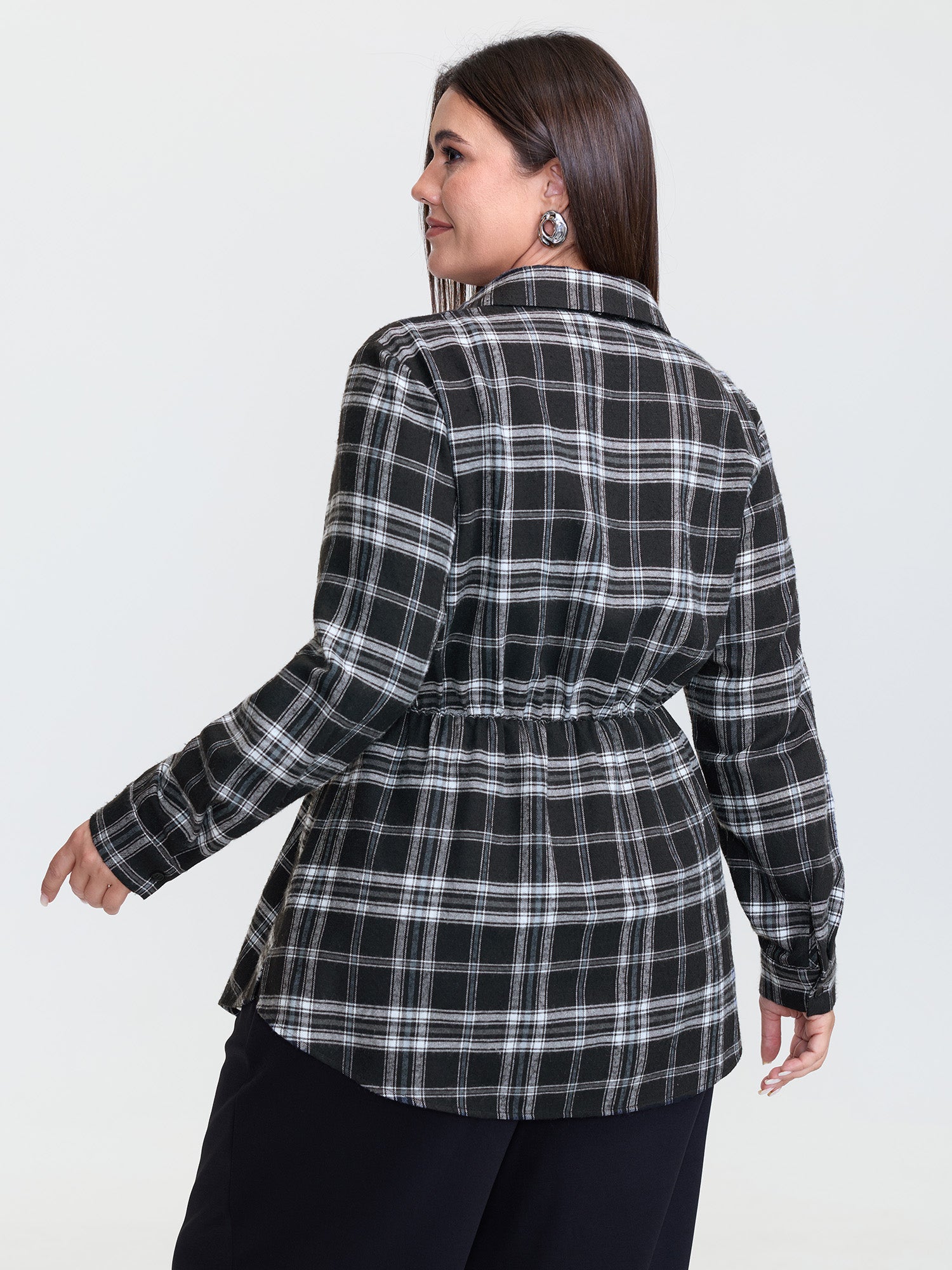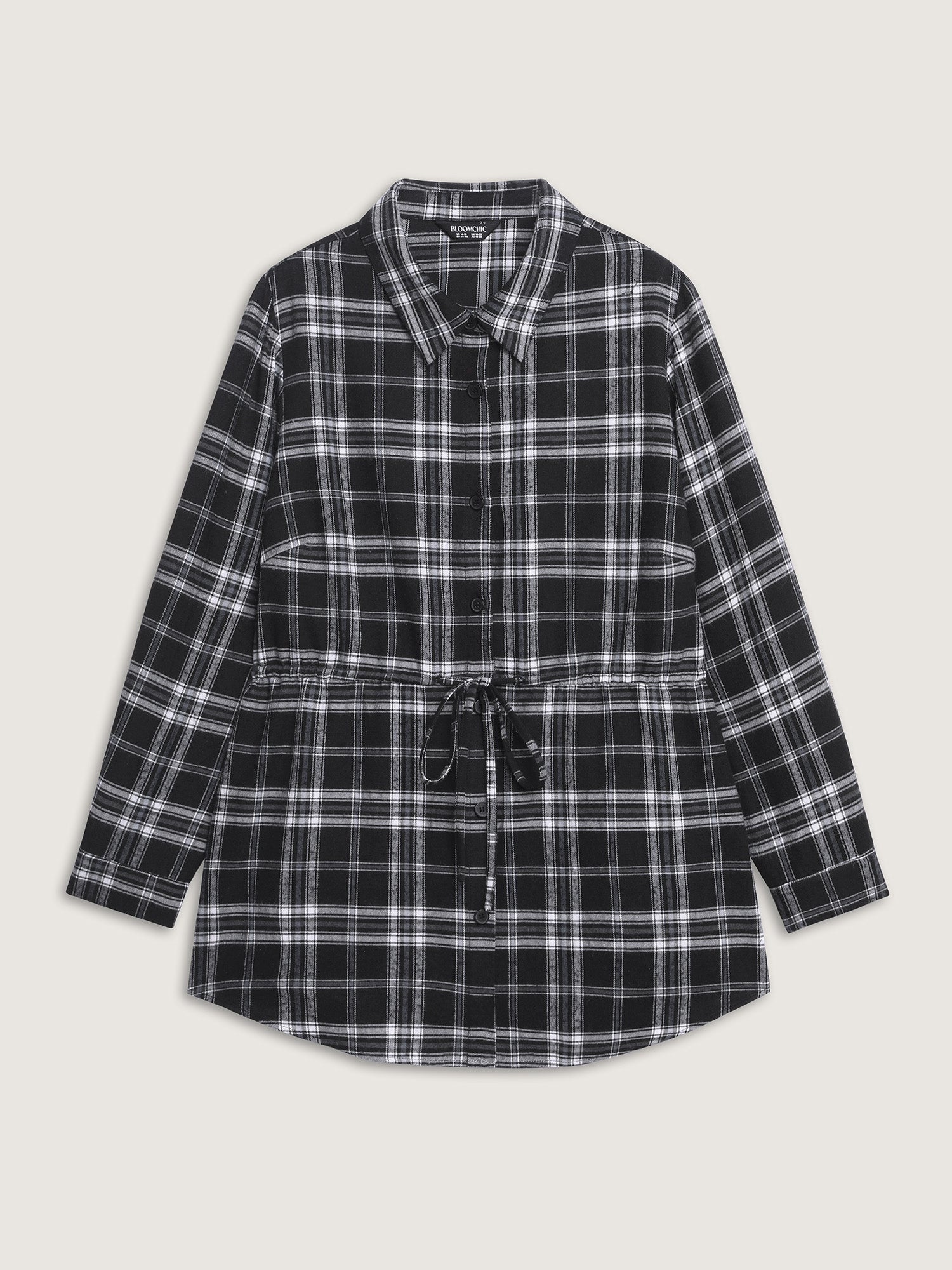Shop Plaid Print Adjustable Waist Button-Down Shirt now and redefine your style with confidence at BloomChic. Tailored for mid and plus-size women. This trendy Tops Women, sizes 10-30. Color:Black;Style:Office;Prints:Plaid;Neckline:Shirt collar;Sleeve Type:Gathered cuff;Pocket:No-pocket