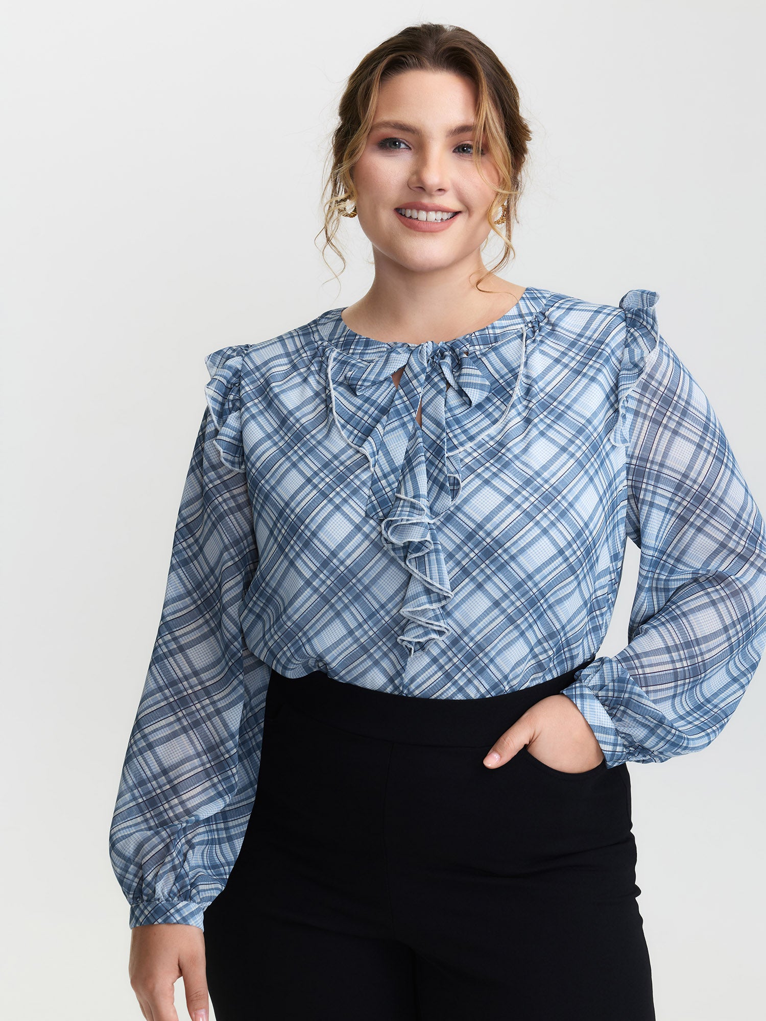 Shop Plaid Print Sheer Ruffled Blouse at BloomChic. Plus Size Clothing & Plus Size Blouses. BloomChic is a digital-first fashion and lifestyle destination for modern women sizes 10-30.