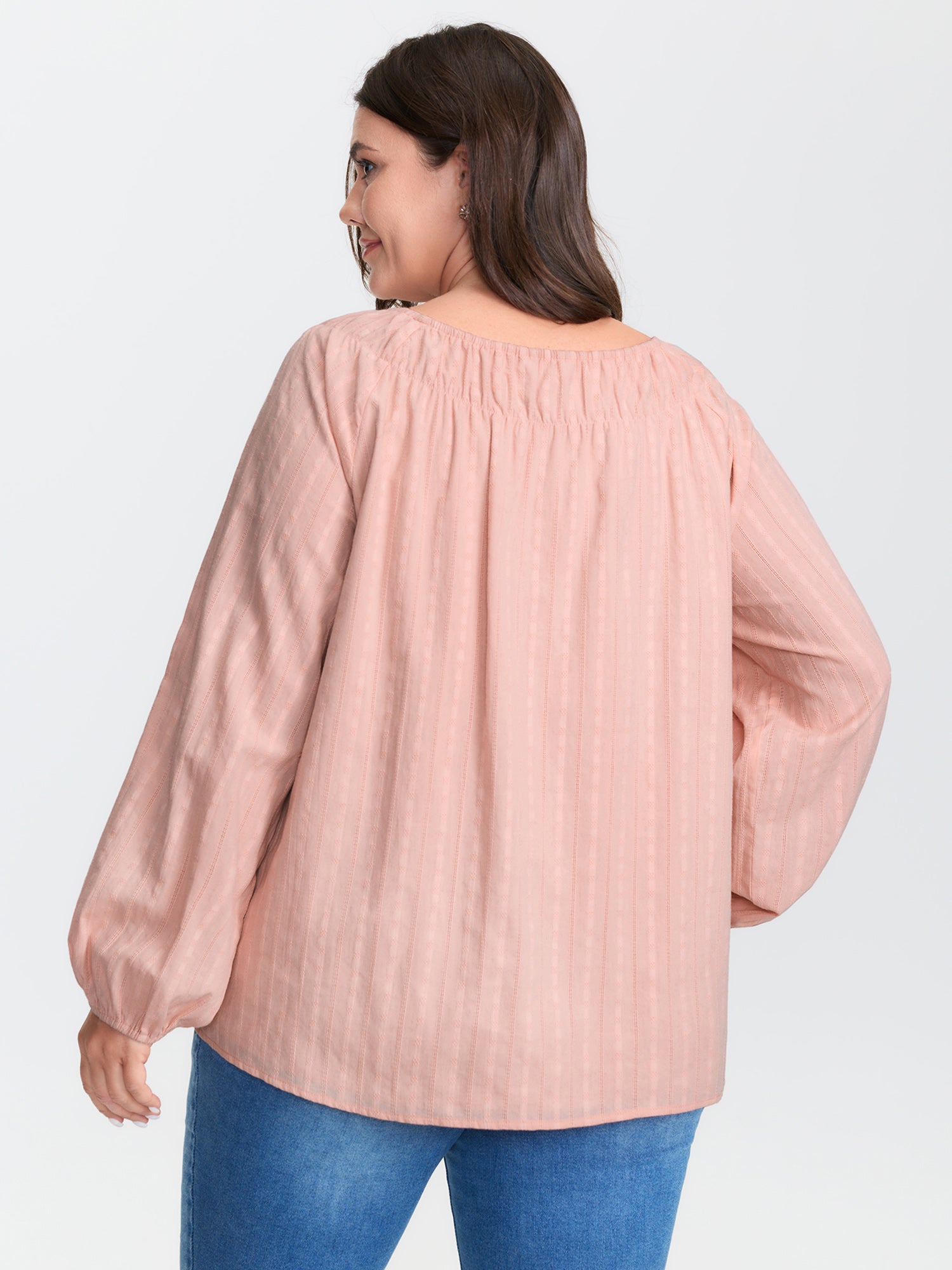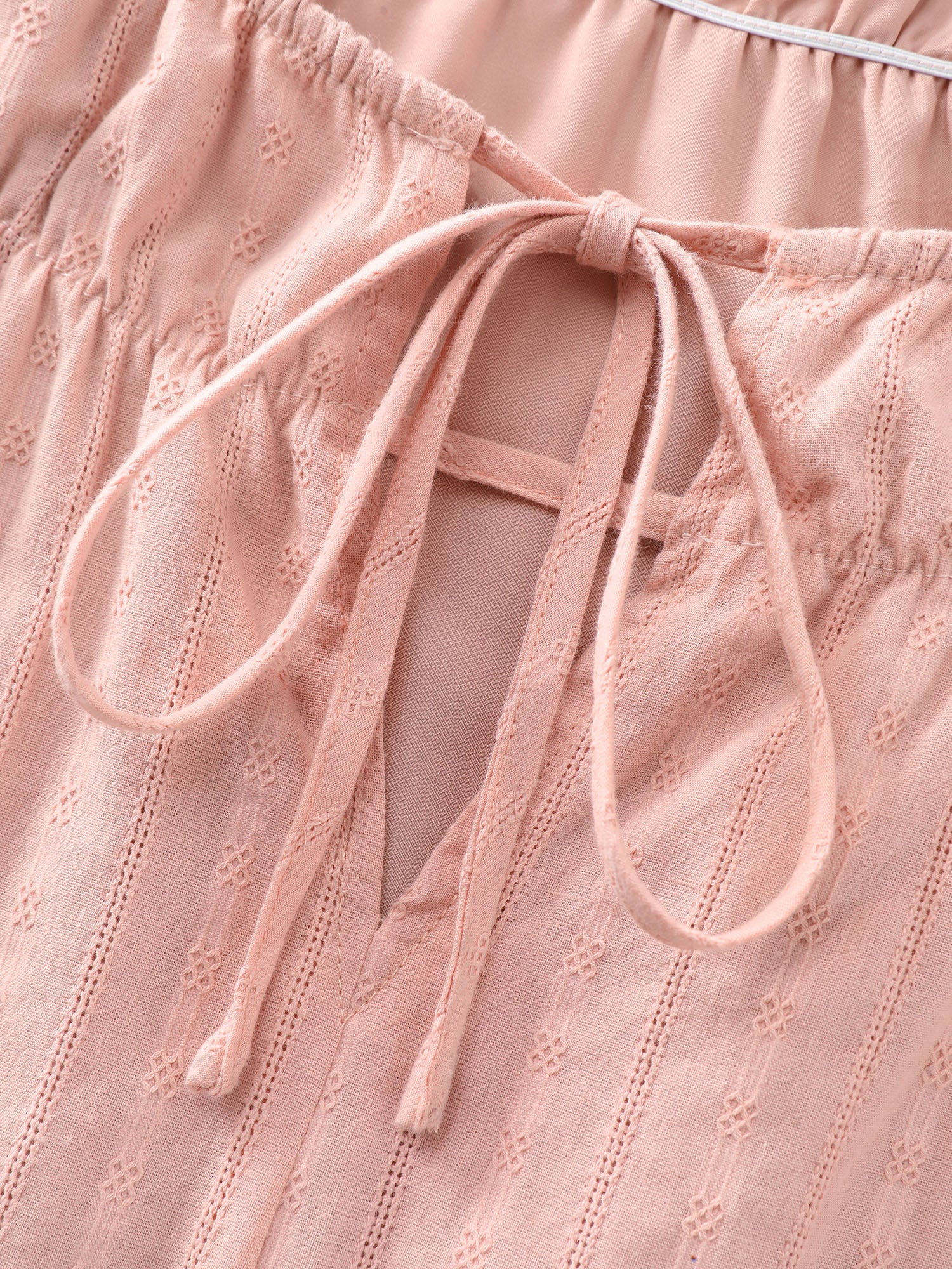 Shop Pure Cotton Jacquard Neck-Tie Blouse now and redefine your style with confidence at BloomChic. Tailored for mid and plus-size women. This trendy Tops Women, sizes 10-30. Color:Dirty Pink;Style:Leisure;Prints:Synthetic texture;Neckline:Round Neck;Sleeve Type:Raglan sleeve;Details:Drawstring, Gathered, Texture;Pocket:No-pocket