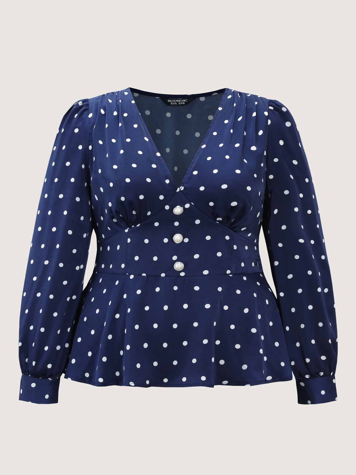 Shop Retro Polka Dots Cinched-Waist Blouse now and redefine your style with confidence at BloomChic. Tailored for mid and plus-size women. This trendy Tops Women, sizes 10-30. Color:Indigo;Style:Retro;Prints:Polka dots;Neckline:Deep V-neck;Sleeve Type:Lantern Sleeve;Details:Contrast, Button, Gathered;Pocket:No-pocket