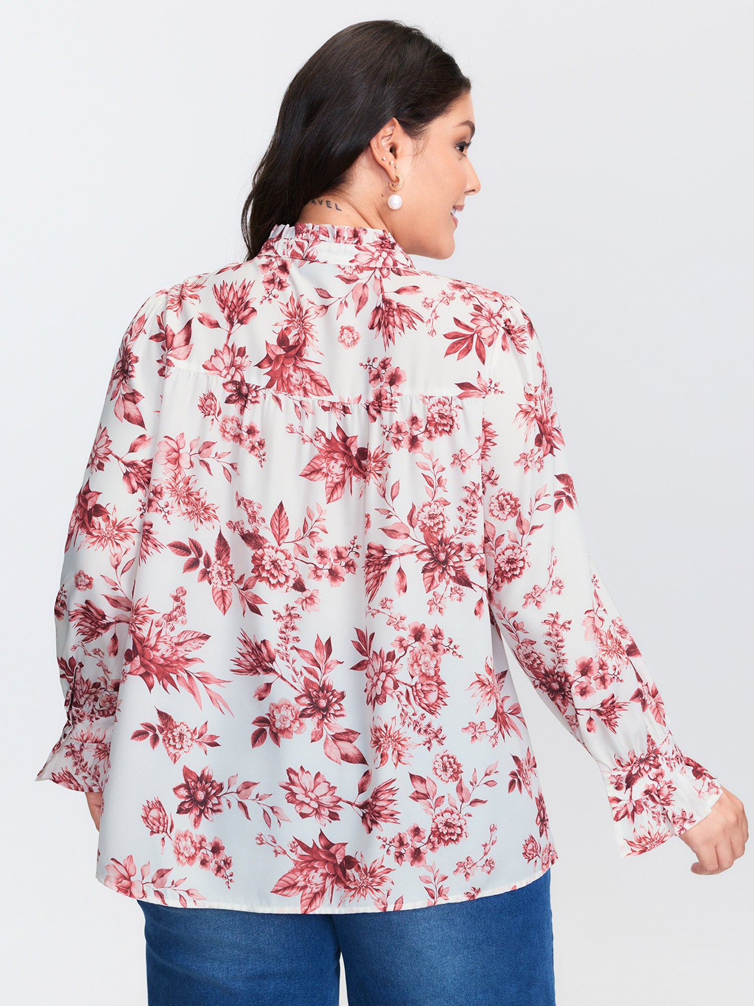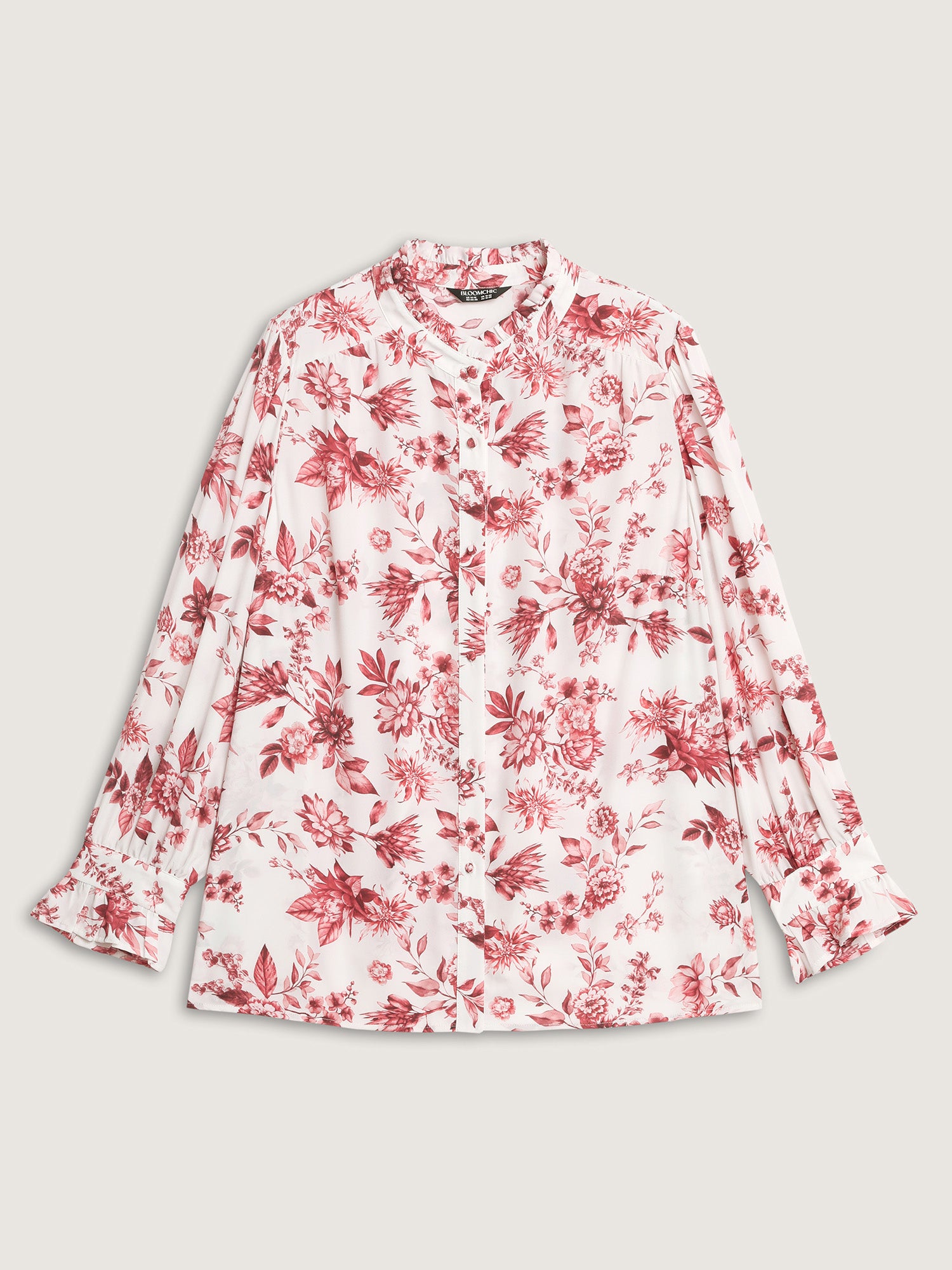 Shop Romantic Floral Ruffled Collar Ribbon Blouse now and redefine your style with confidence at BloomChic. Tailored for mid and plus-size women. This trendy Tops Women, sizes 10-30. Color:Scarlet Red;Style:Timeless;Prints:Ditsy floral;Neckline:Stand-up collar;Sleeve Type:Lantern Sleeve;Details:Ruffles, Contrast, Gathered;Pocket:No-pocket