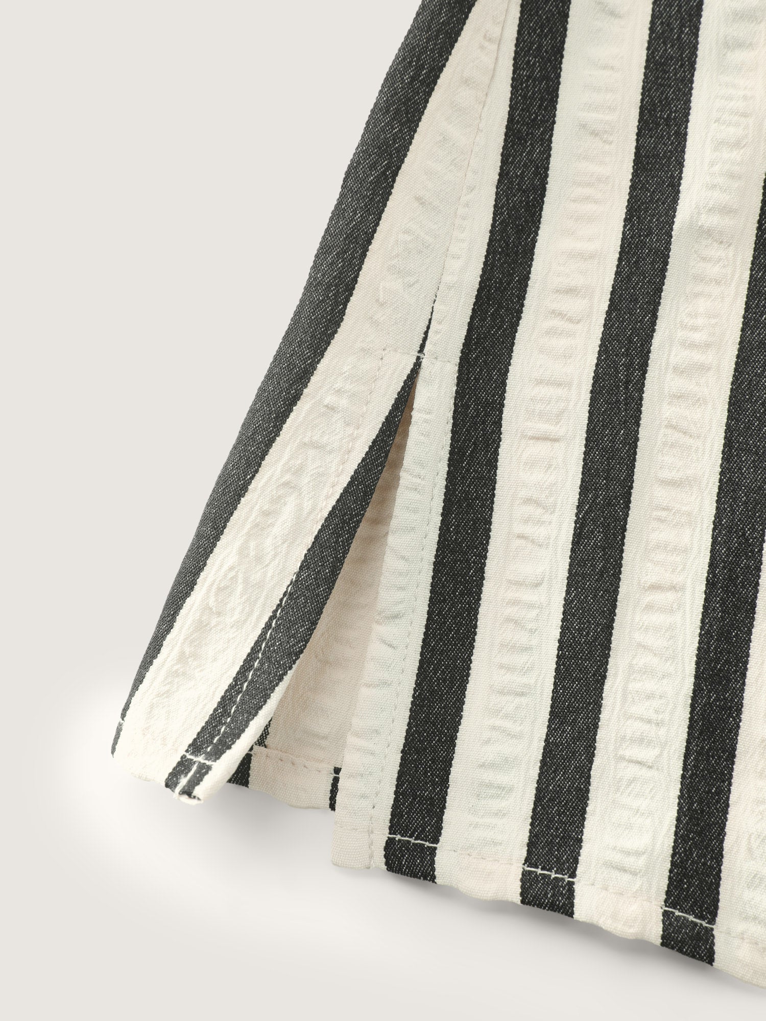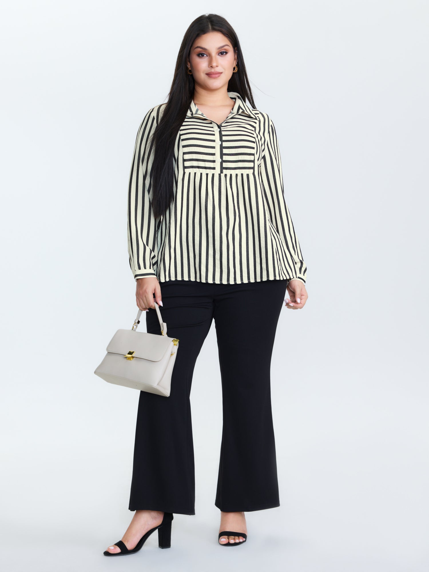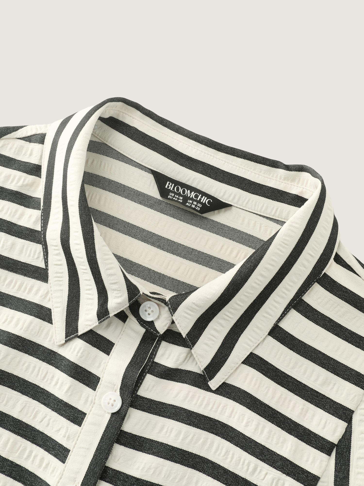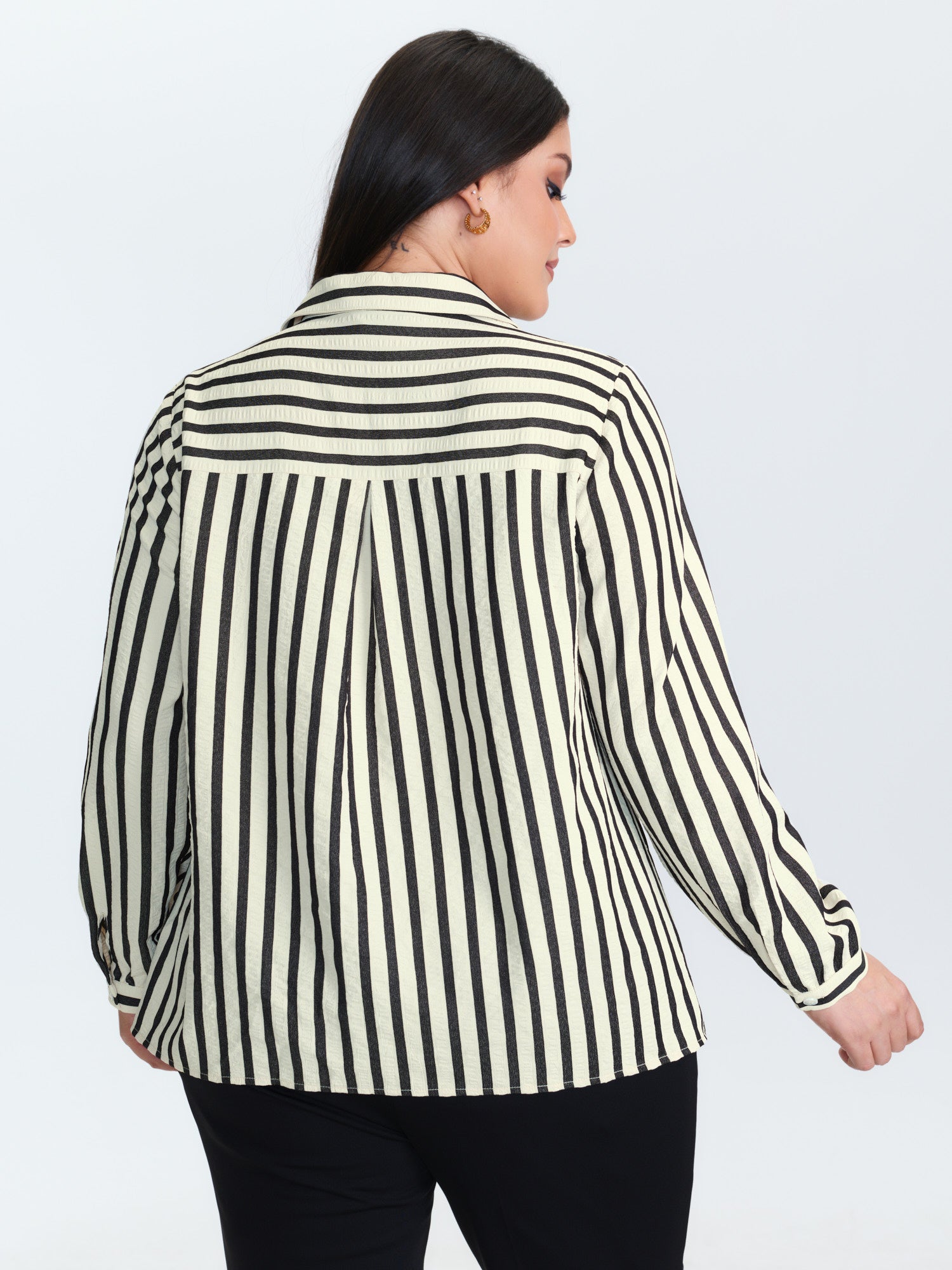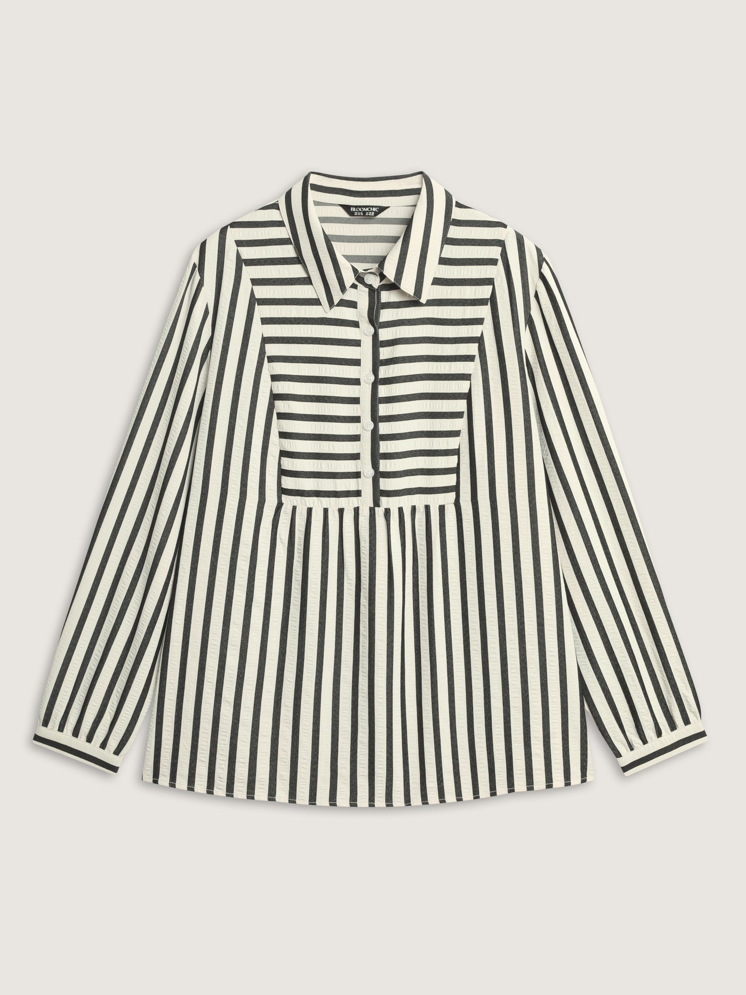 Shop Striped Collar Textured Half-Placket Blouse now and redefine your style with confidence at BloomChic. Tailored for mid and plus-size women. This trendy Tops Women, sizes 10-30. Color:Black;Style:Office;Prints:Stripes;Neckline:Shirt collar;Sleeve Type:Gathered cuff;Pocket:No-pocket