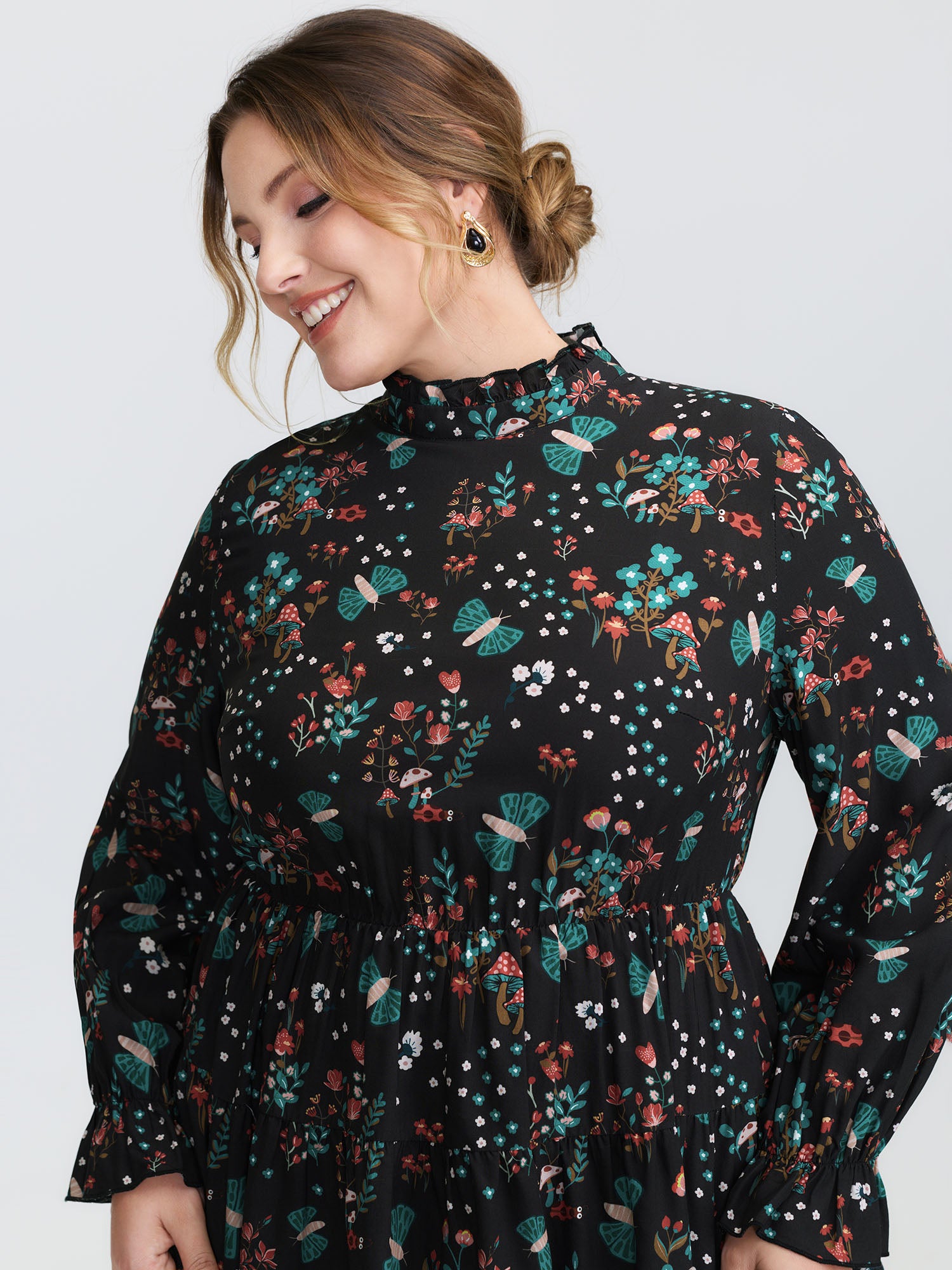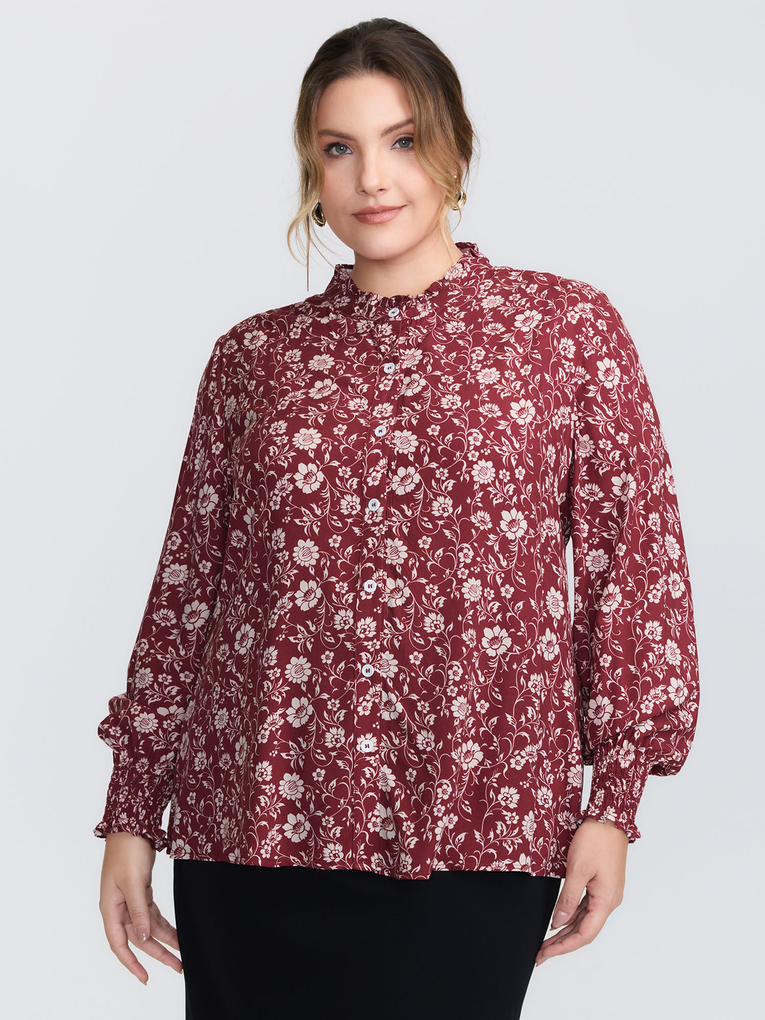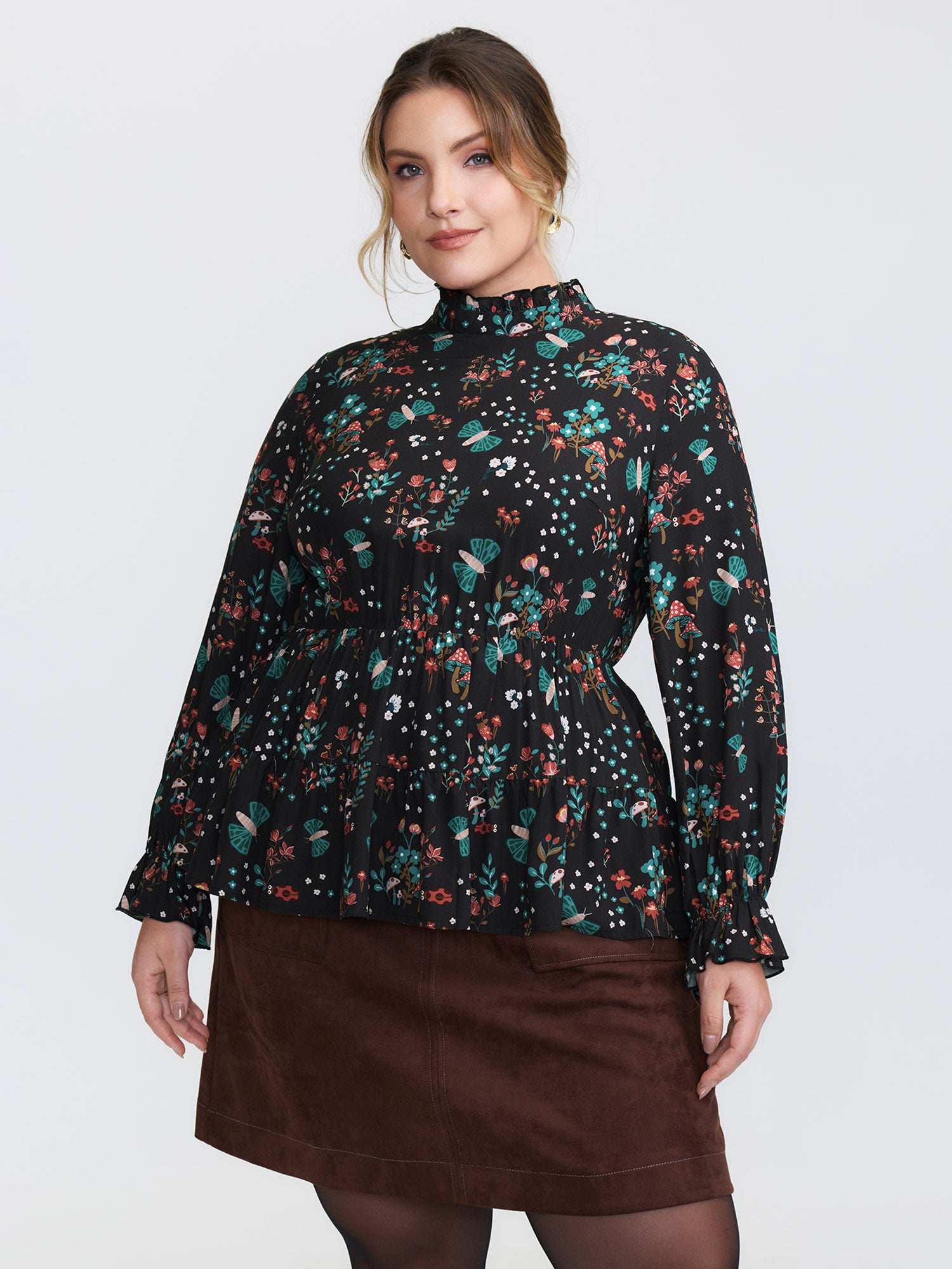Fall Silhouette Florals Button Ruffled Blouse