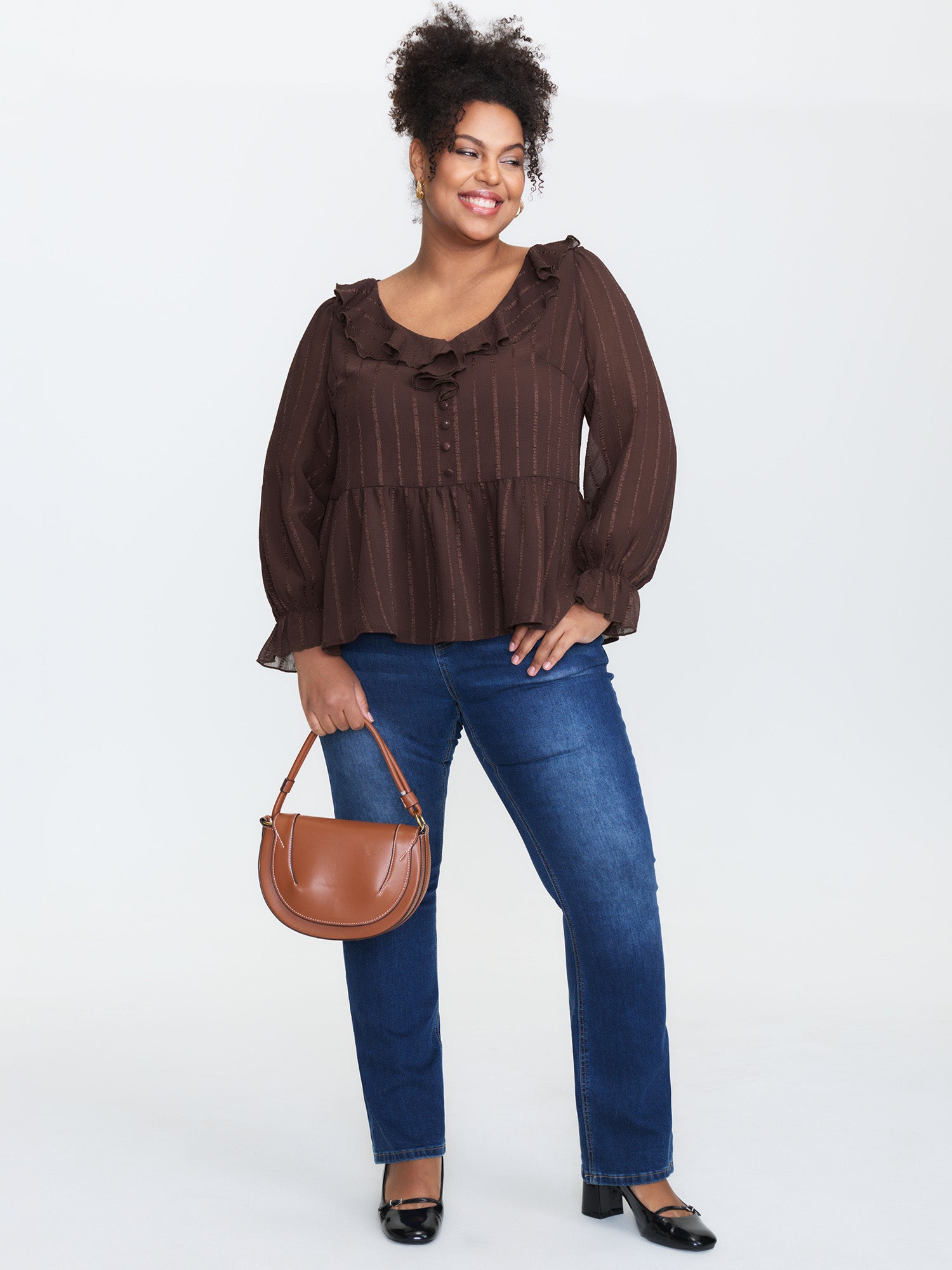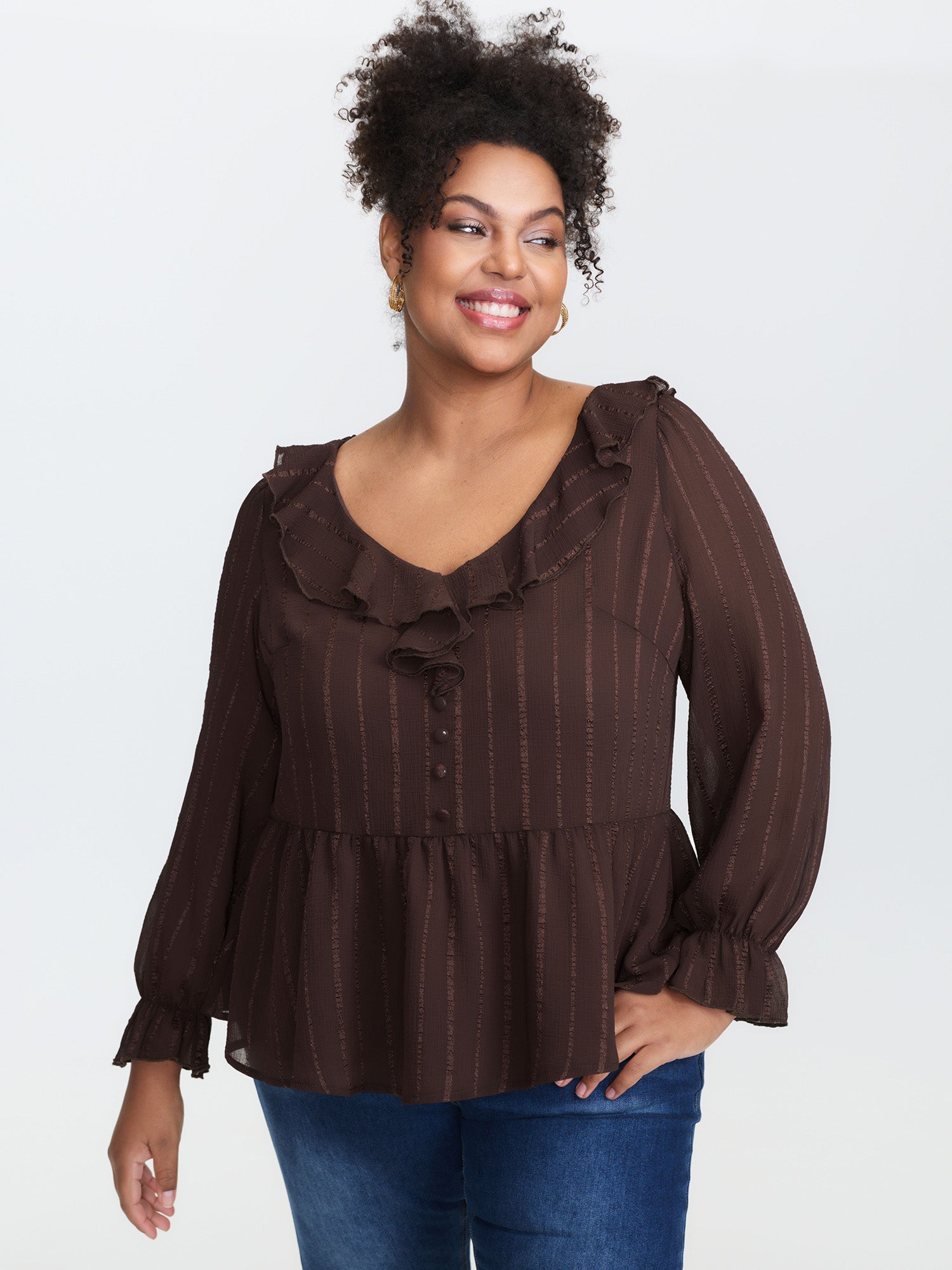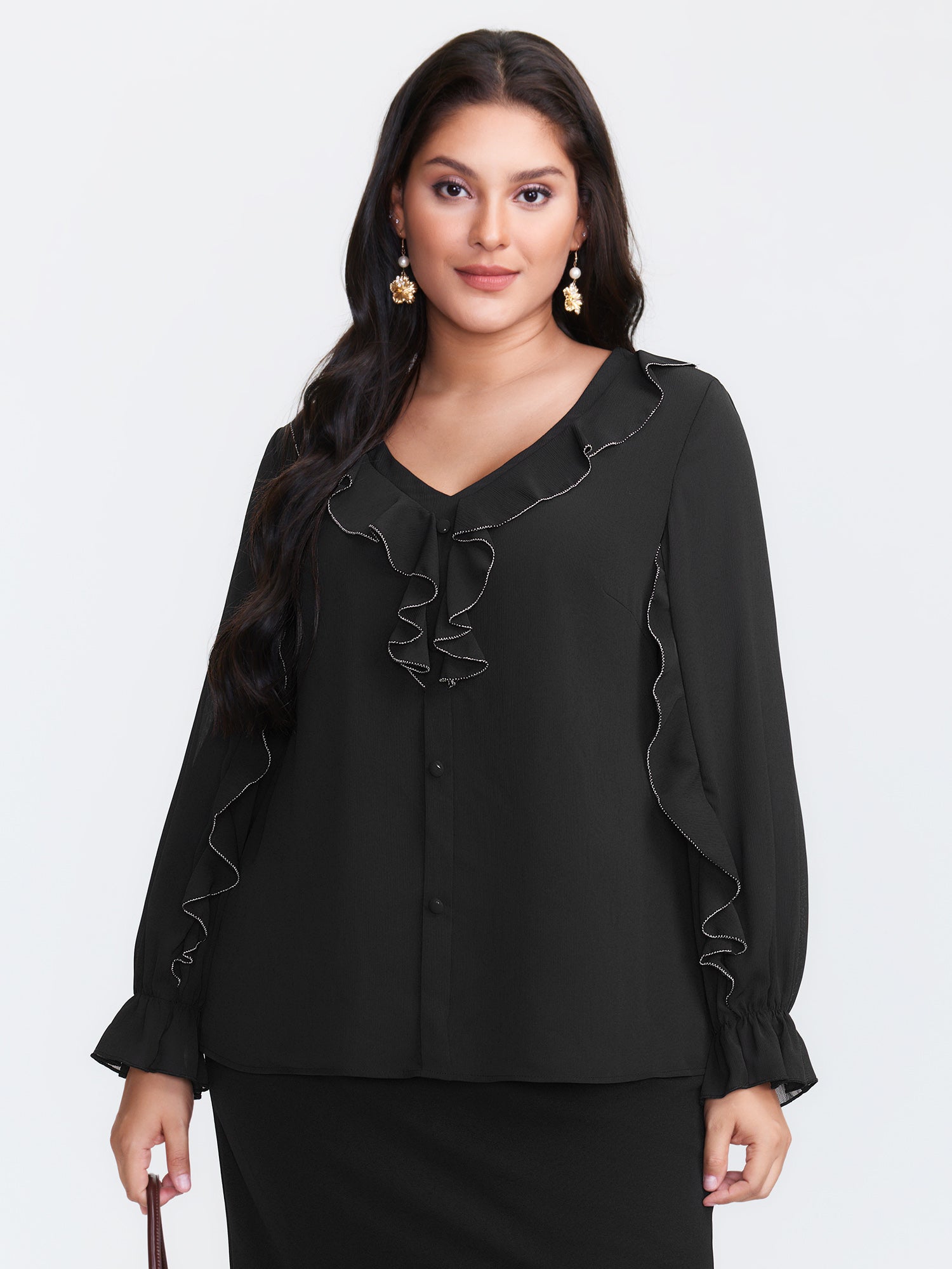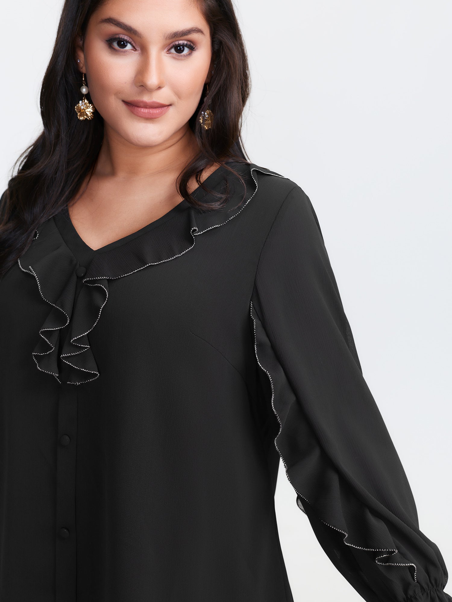 Textured Chiffon Ruffled Neckline Blouse