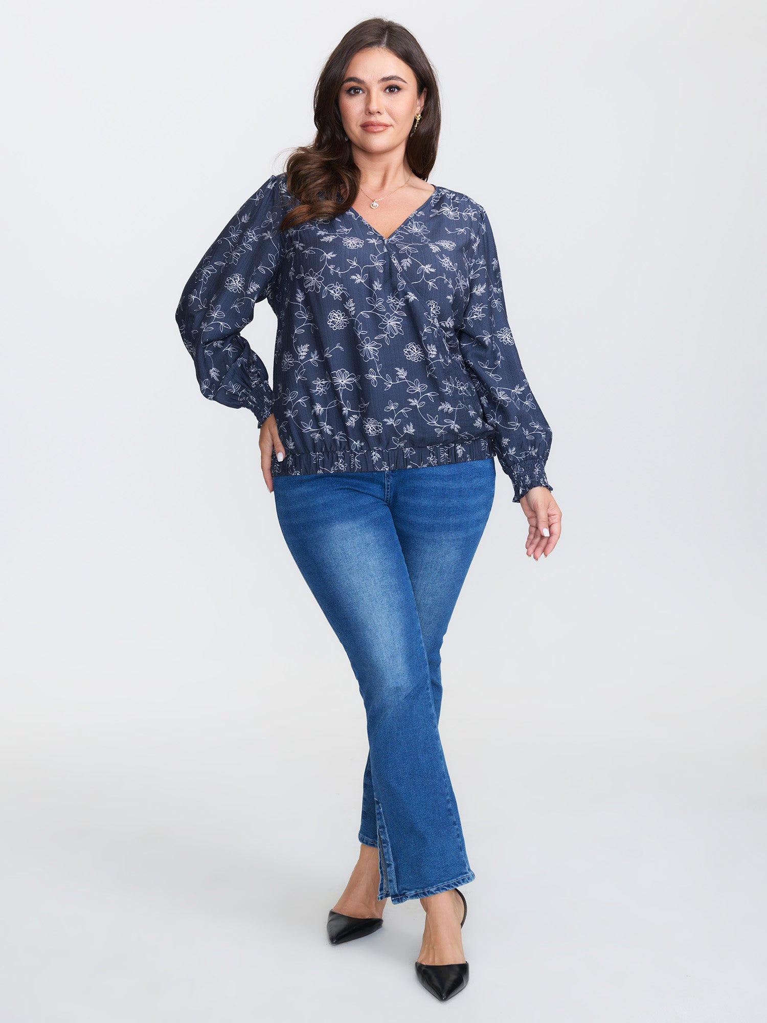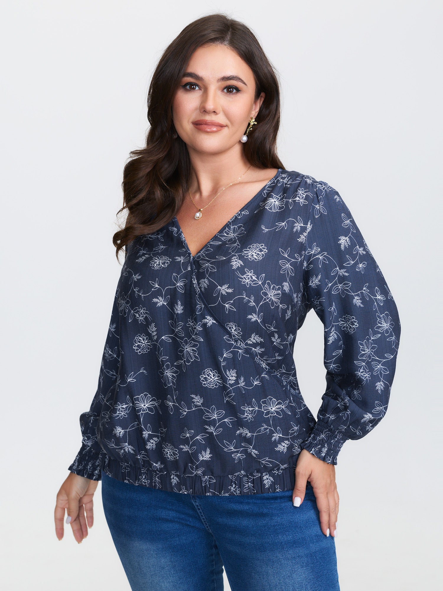 Floral Print Surplice Neck Blouse
