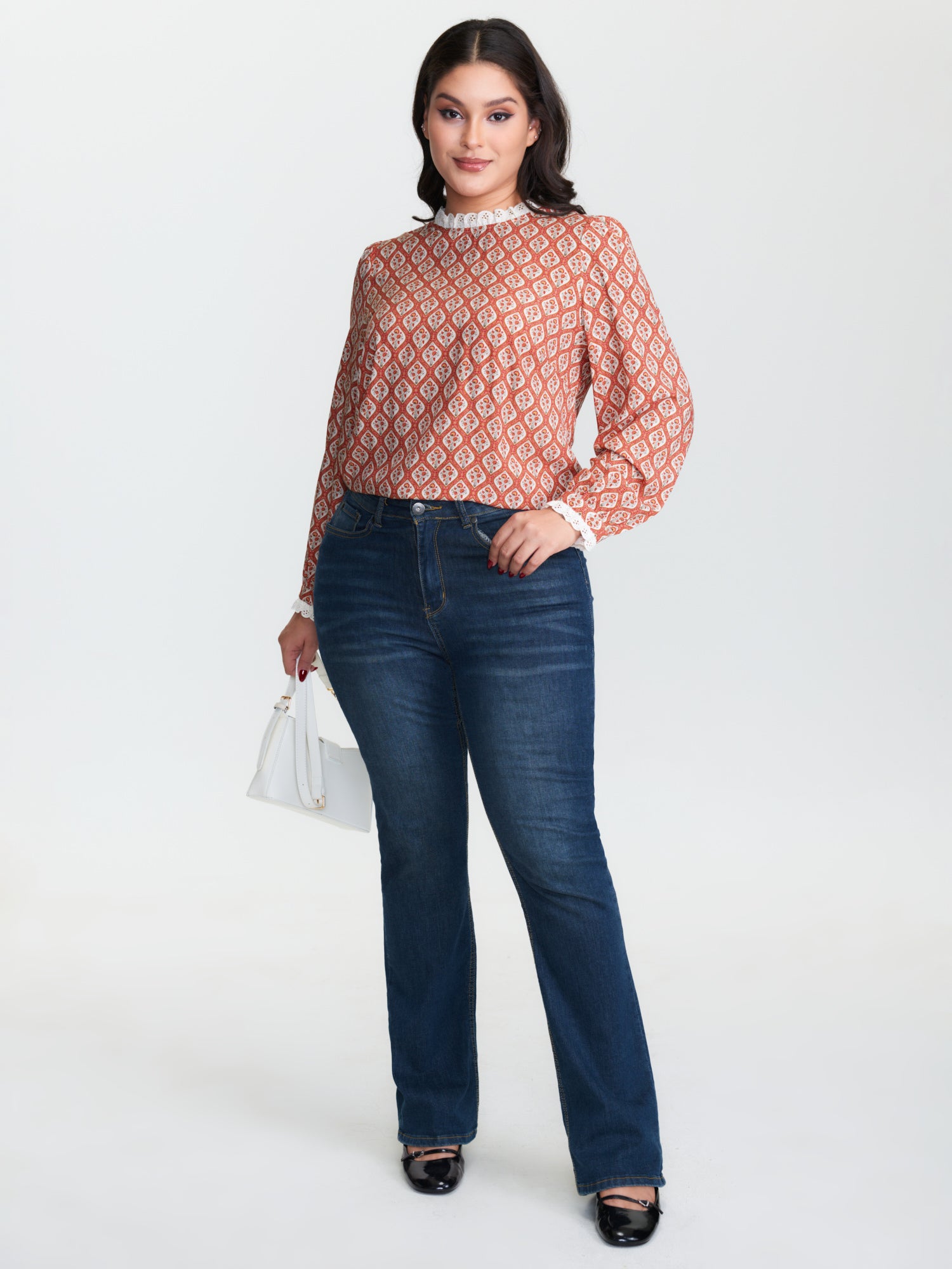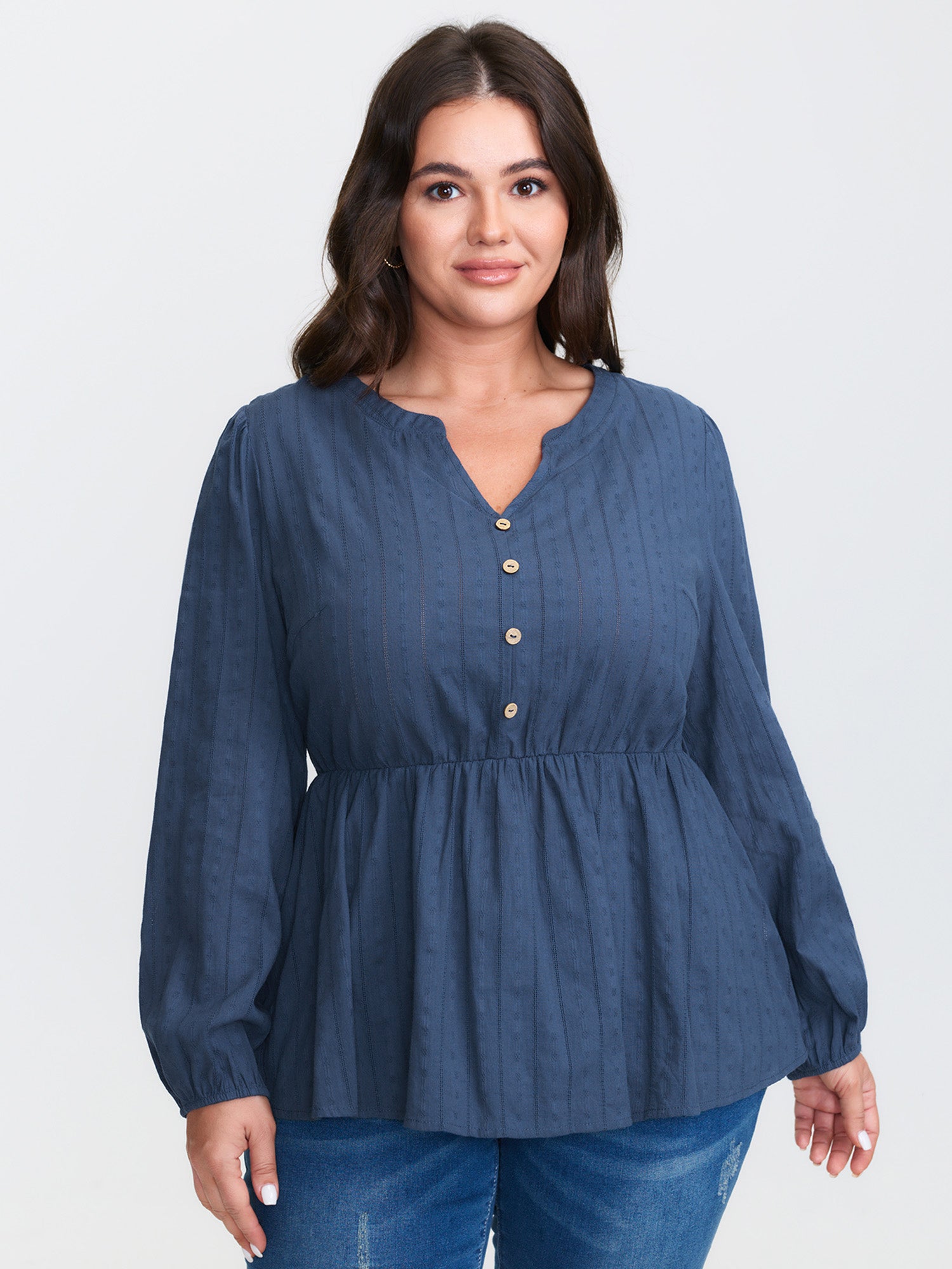 Cotton Snowflake Effect Half-Placket Blouse