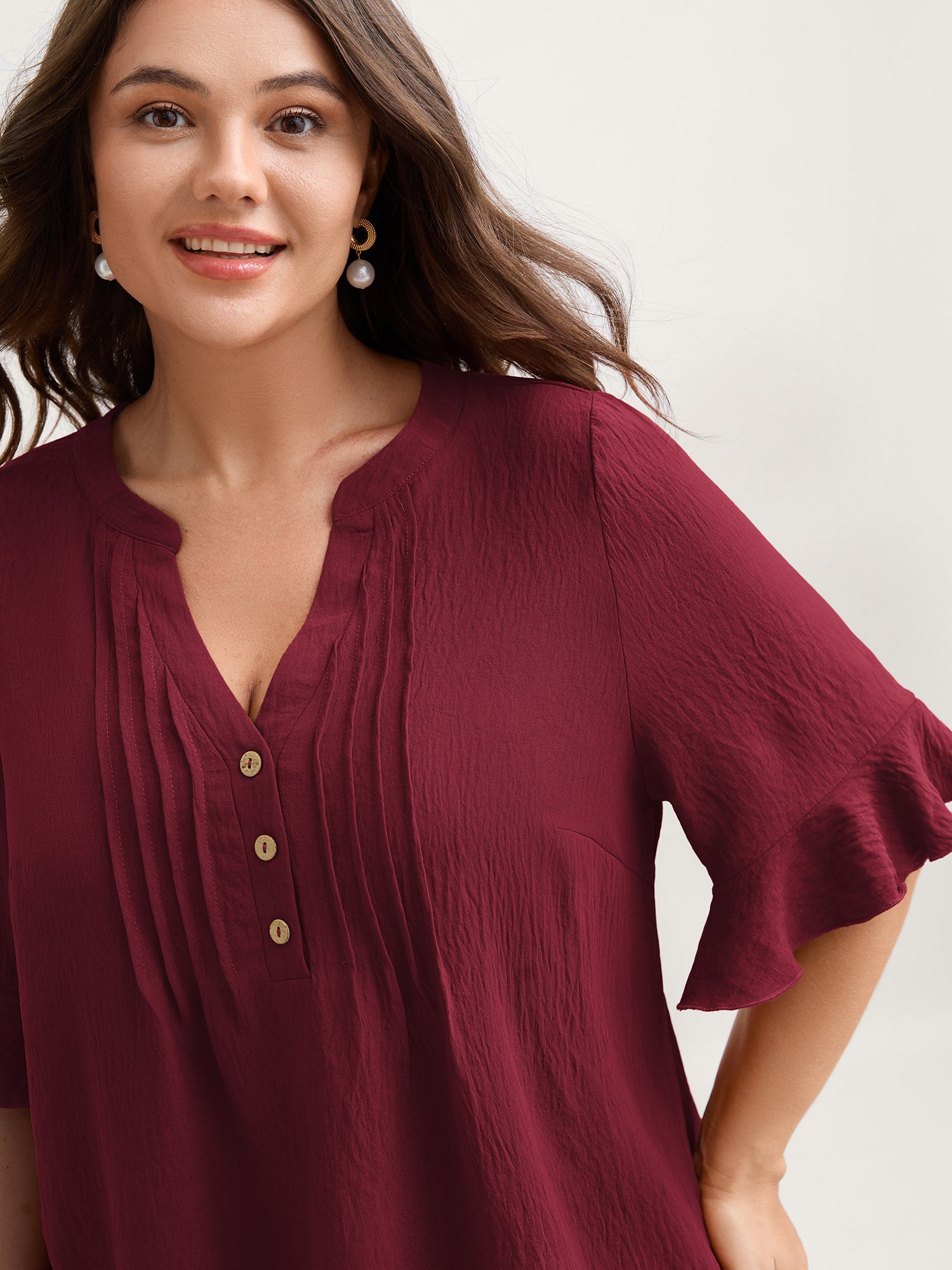 Toothpick Pleats Ruffled Sleeve Solid Blouse