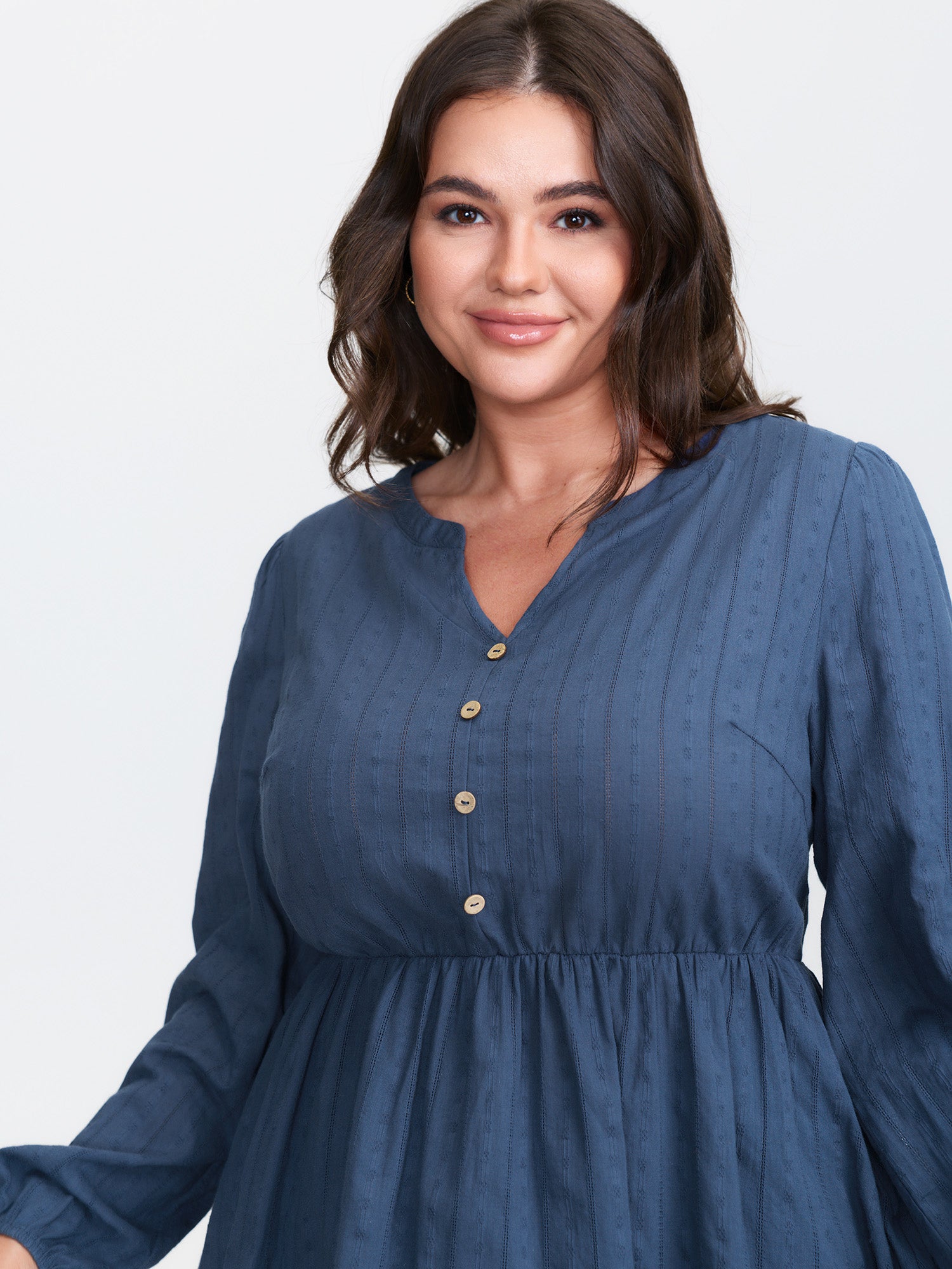Cotton Textured Cinched-Flared Blouse