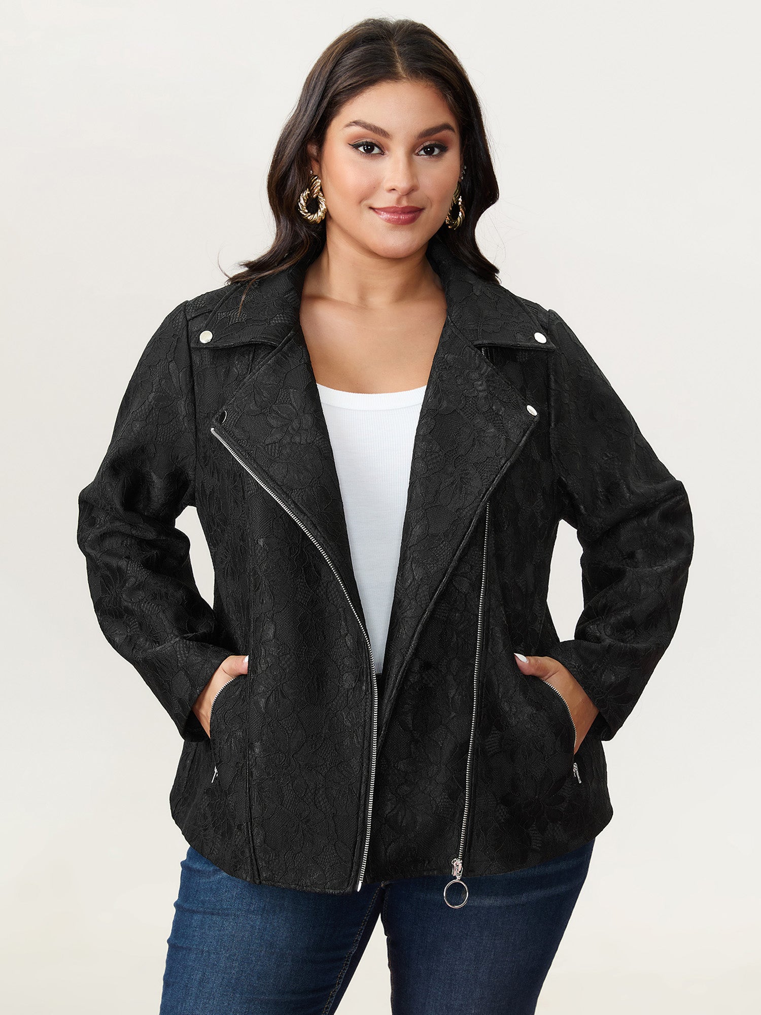 Lace Mesh Pocket Zipper Coat