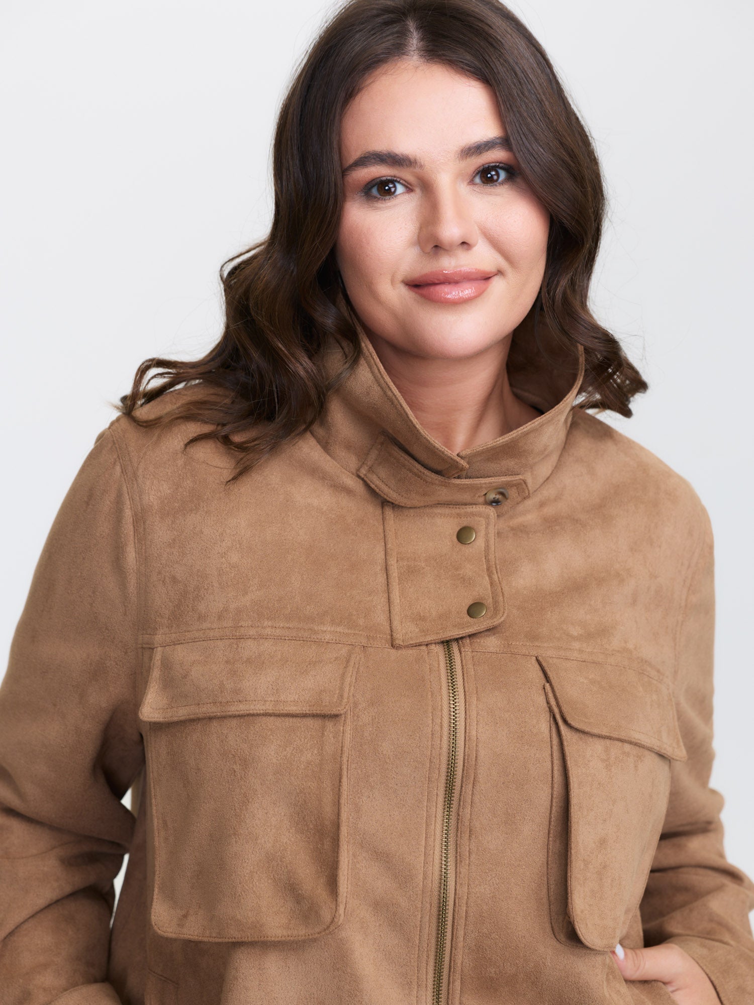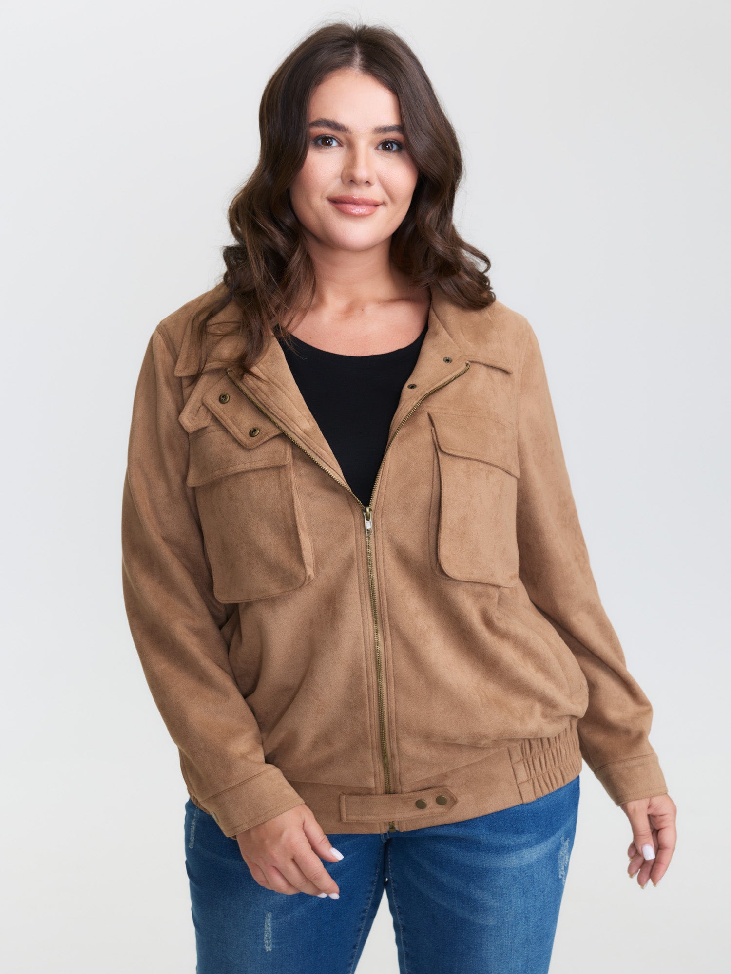 Stretchy Hem Zipper Solid Jacket
