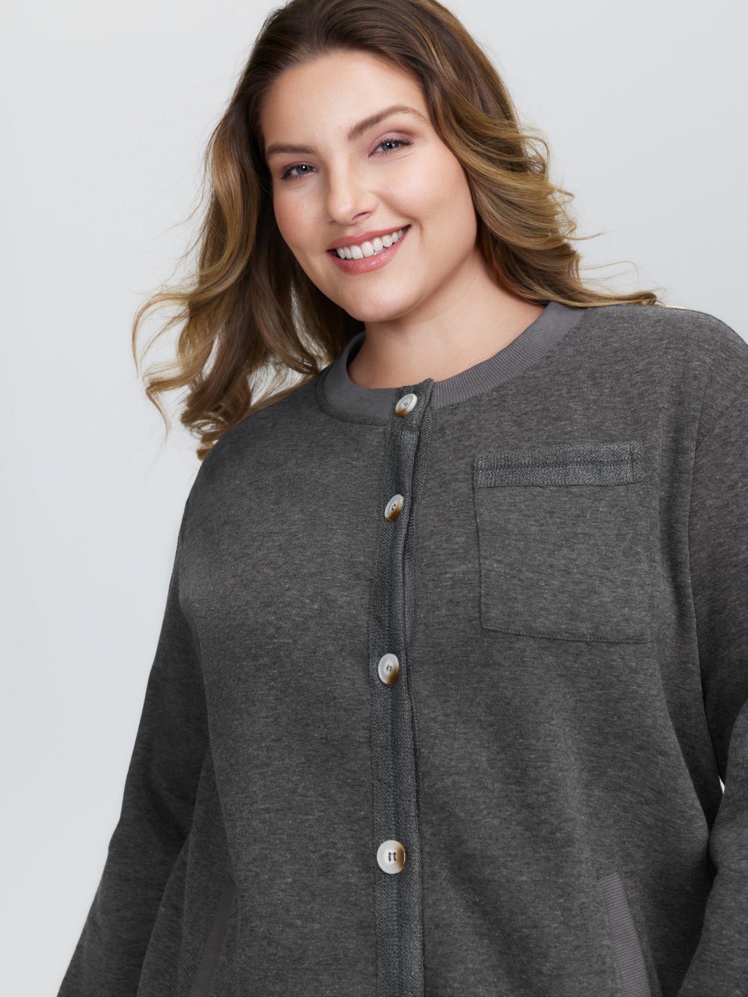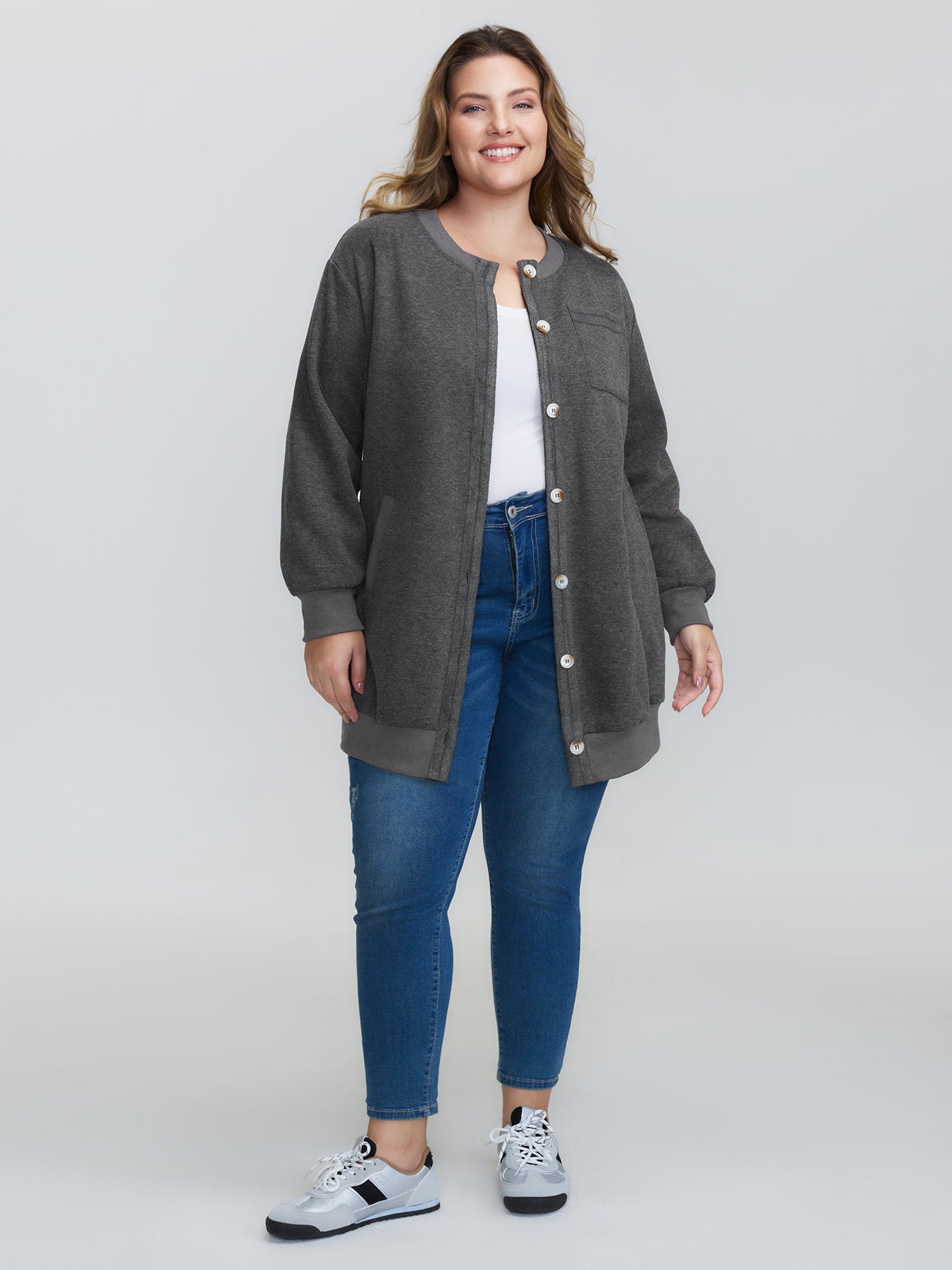 Round Neck Ribbed Hem Button Coat