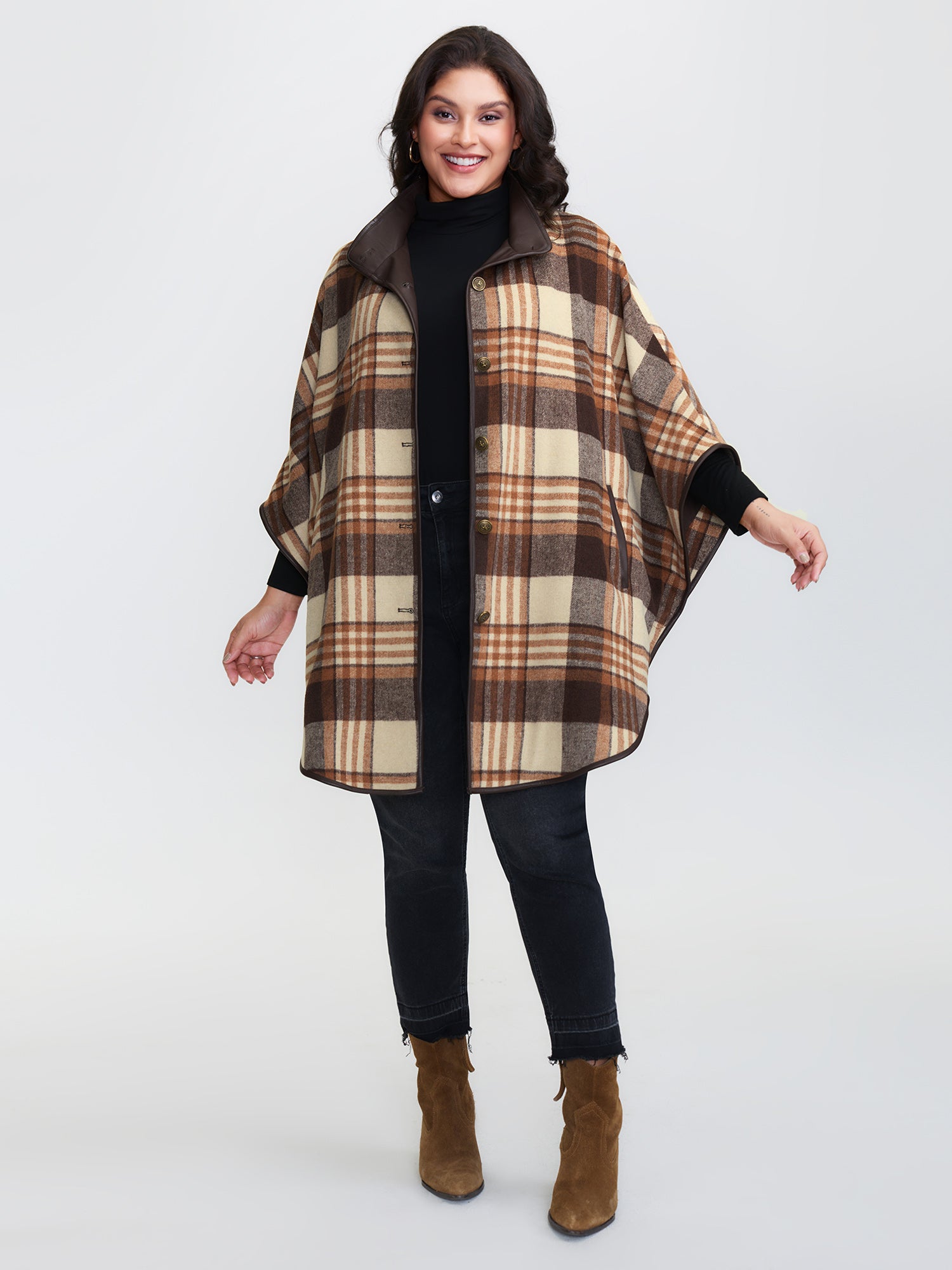 Plaid Pattern Contrast Button Coat