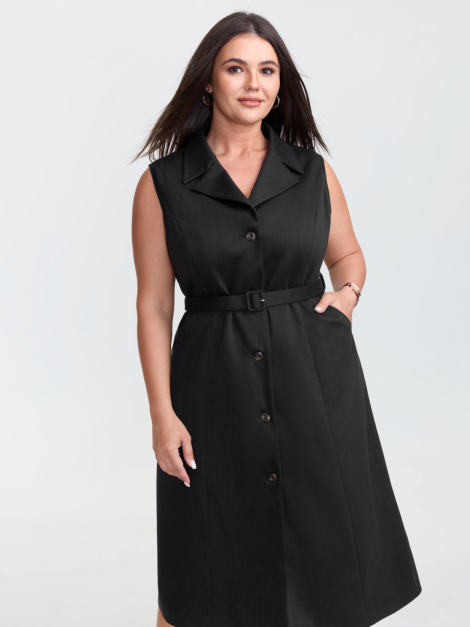 Pleated Curvy Hem Button Blazer