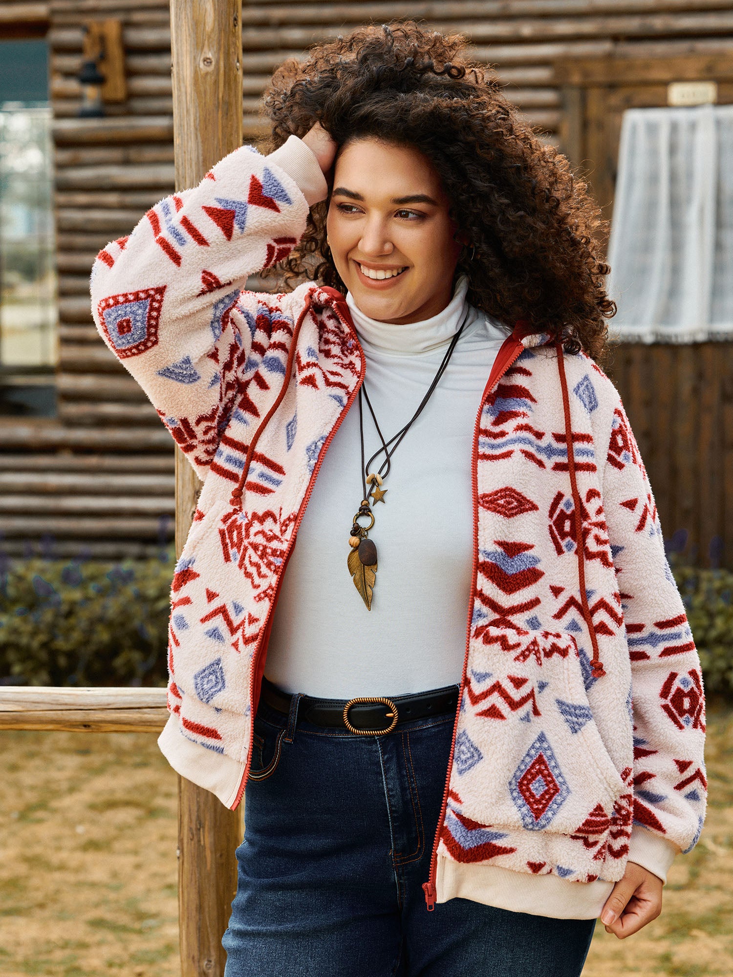 Holiday Pattern Zipper Contrast Jacket