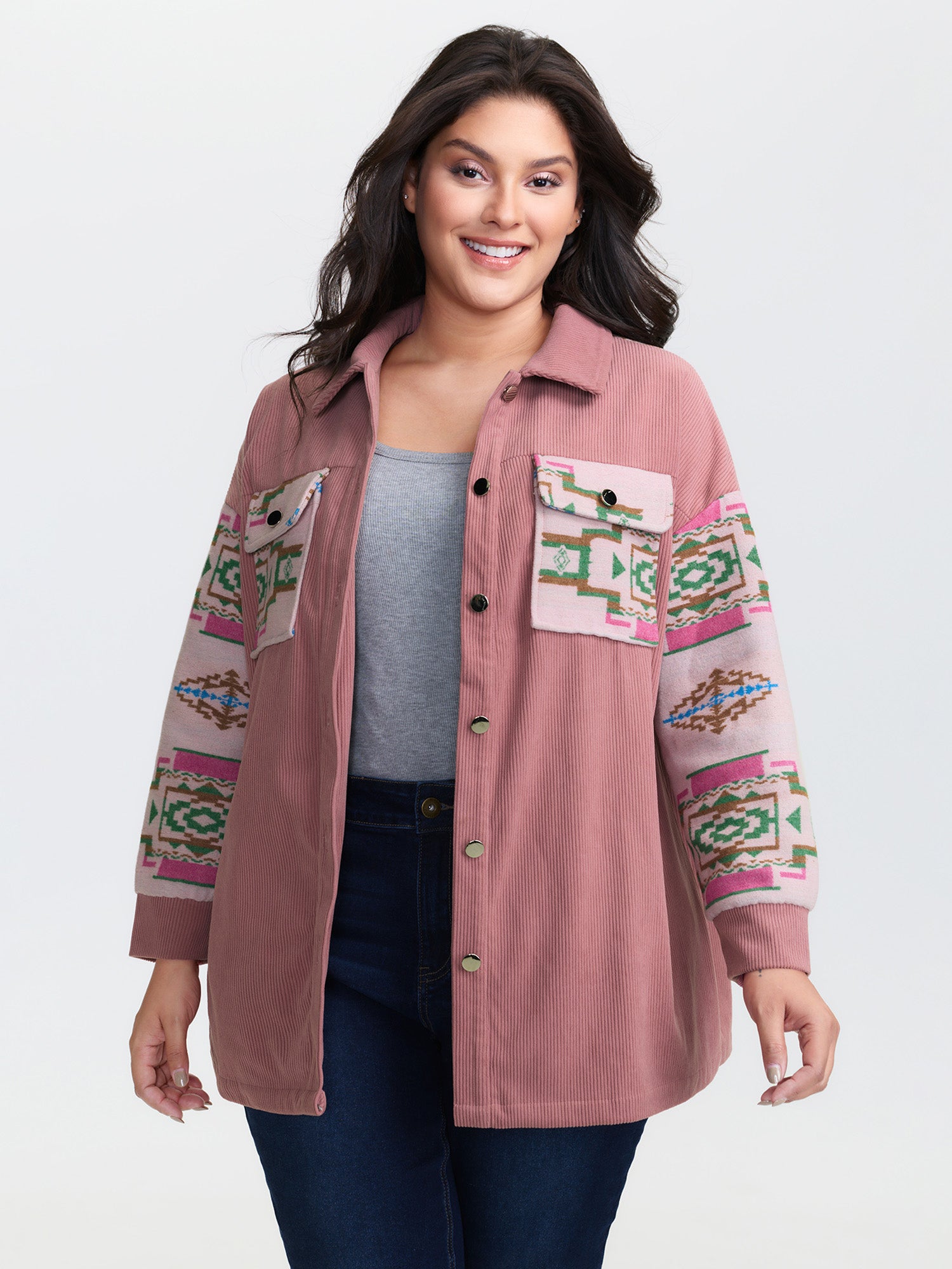 Flocked Textured Button Pockets Jacket