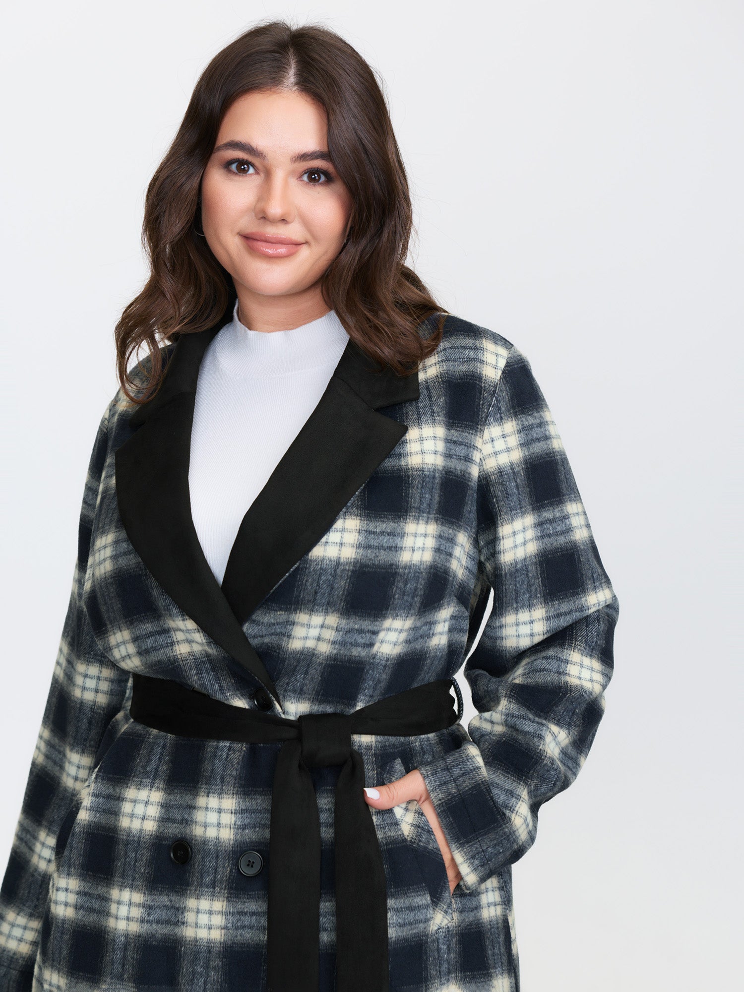 Plaid Belted Waist-Defining Coat