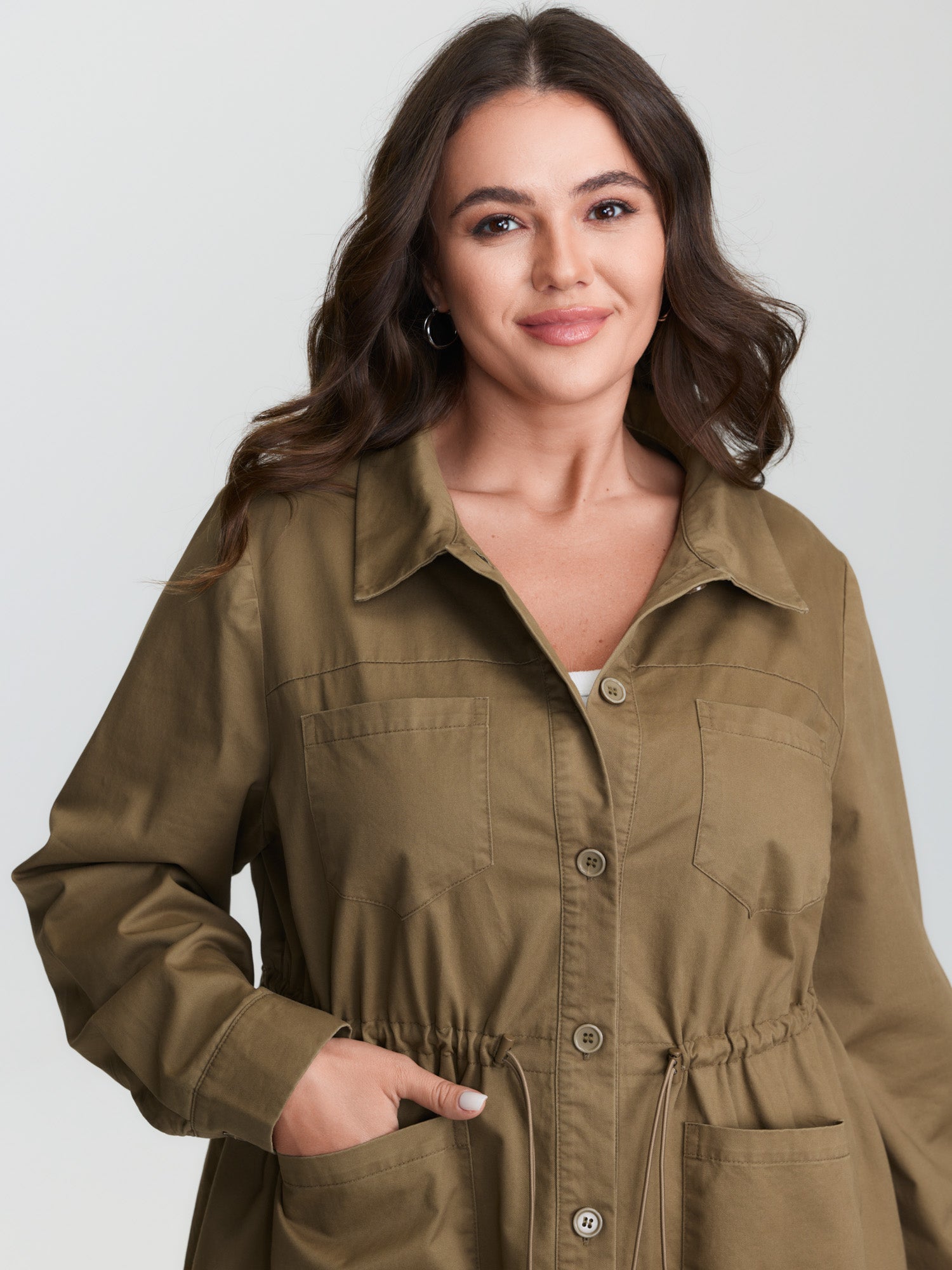Pure Cotton Drawstring Washed Effect Coat
