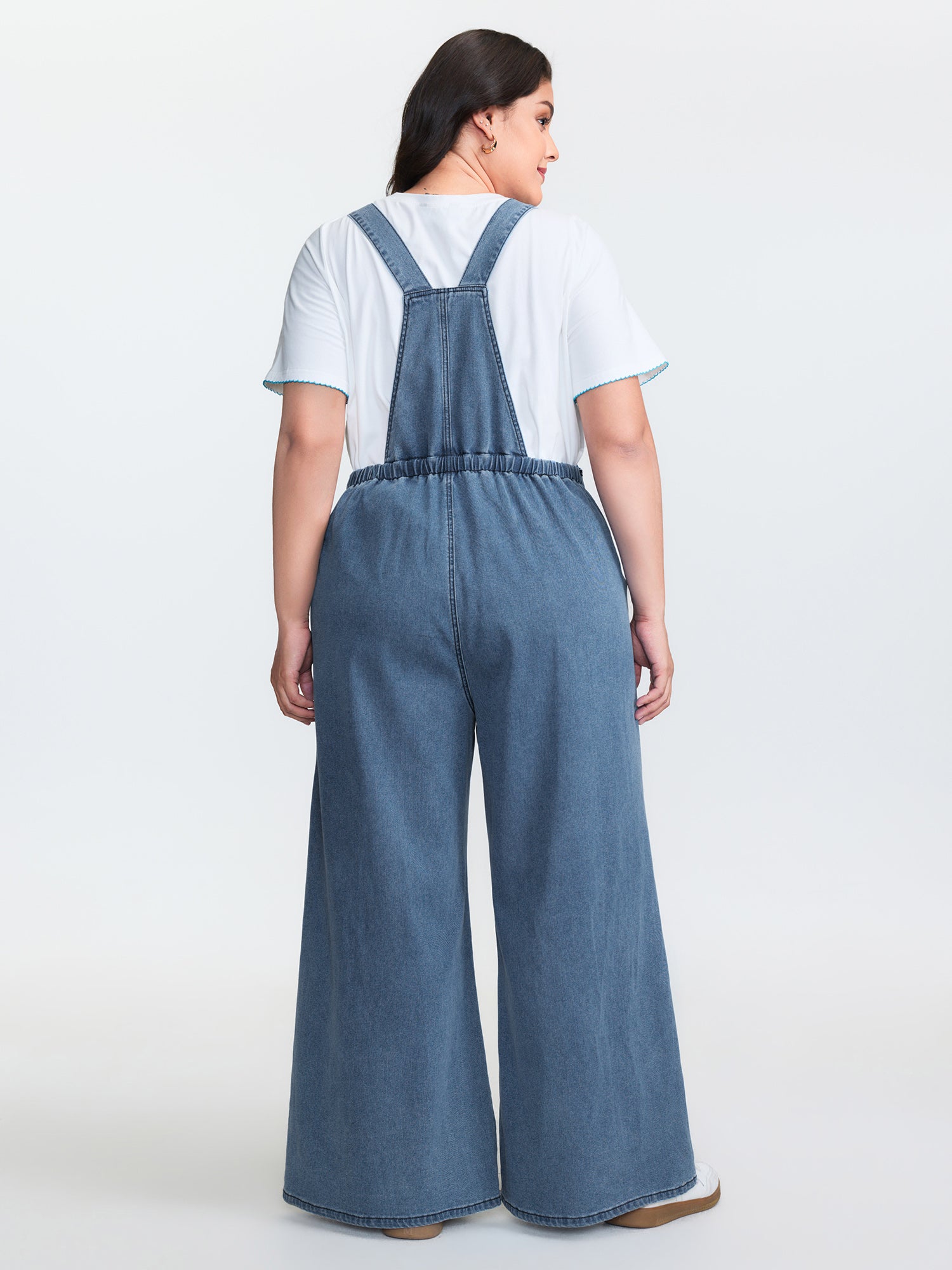 Shop Stretchy Relaxed-Fit Overall Wide-Leg Jumpsuit now and redefine your style with confidence at BloomChic. Tailored for mid and plus-size women. This trendy Jumpsuits Women, sizes 10-30. Color:Mid Blue;Style_2:Leisure;Prints:Non;Pocket:Slanted pocket;Belt:No-belt;Closure Type:Non