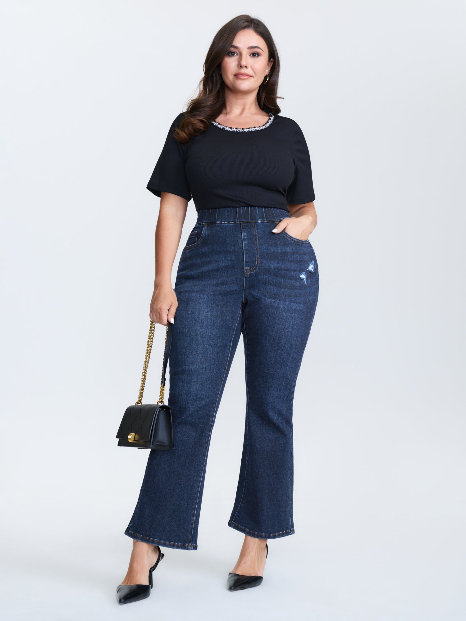 Stretchy Cuff Pocket Mid-Rise Jeans