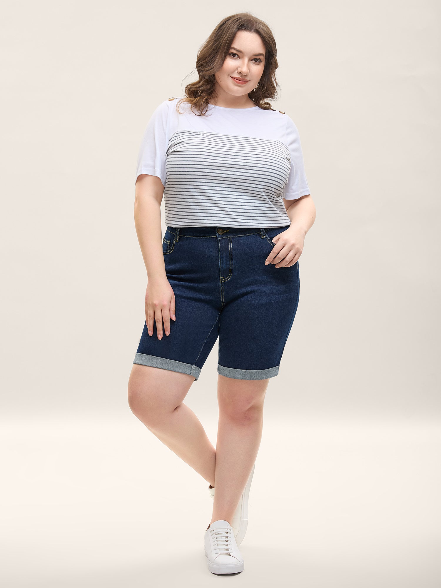 Stretchy Roll Hem Denim Shorts