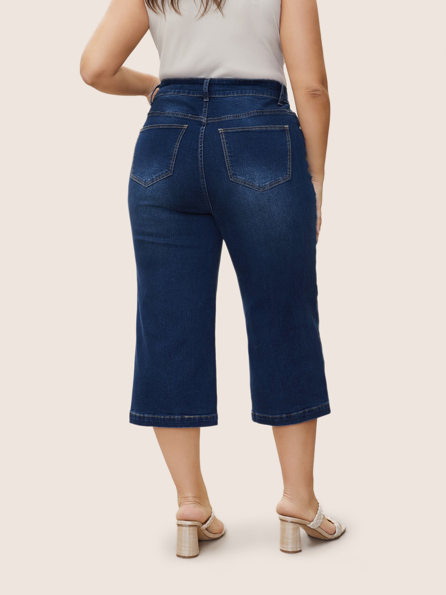 Stretchy Mid Rise Wide Leg Jeans
