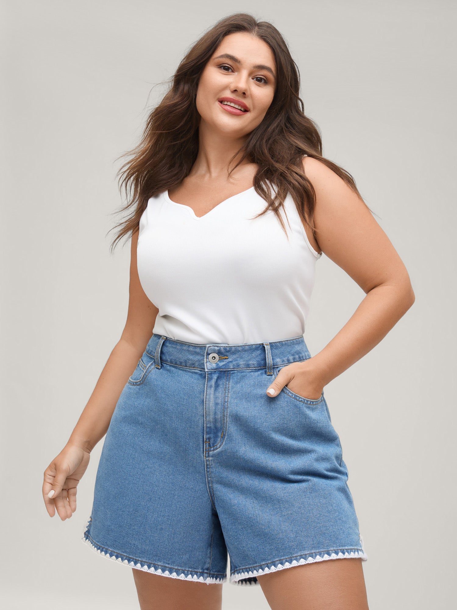 No-Gap Waist Stretchy Denim Shorts