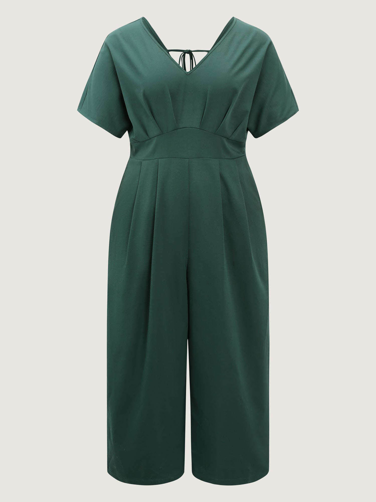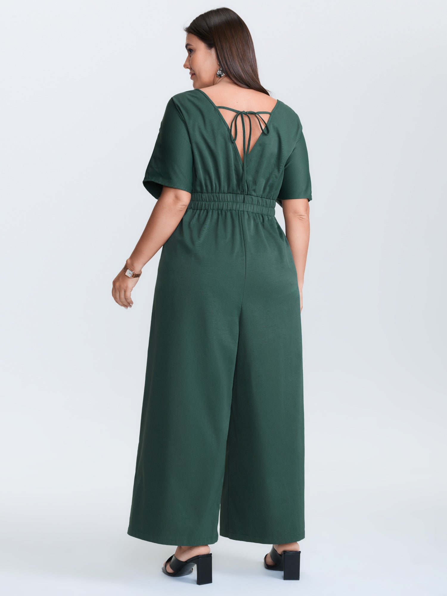 Shop Backless Tie Pockets Jumpsuit now and redefine your style with confidence at BloomChic. Tailored for mid and plus-size women. This trendy Jumpsuits Women, sizes 10-30. Color:Dark Green;Style:Office;Neckline:V-neck;Sleeve Type:Raglan sleeve;Prints:Non;Pocket:Slanted pocket;Belt:No-belt;Closure Type:Non