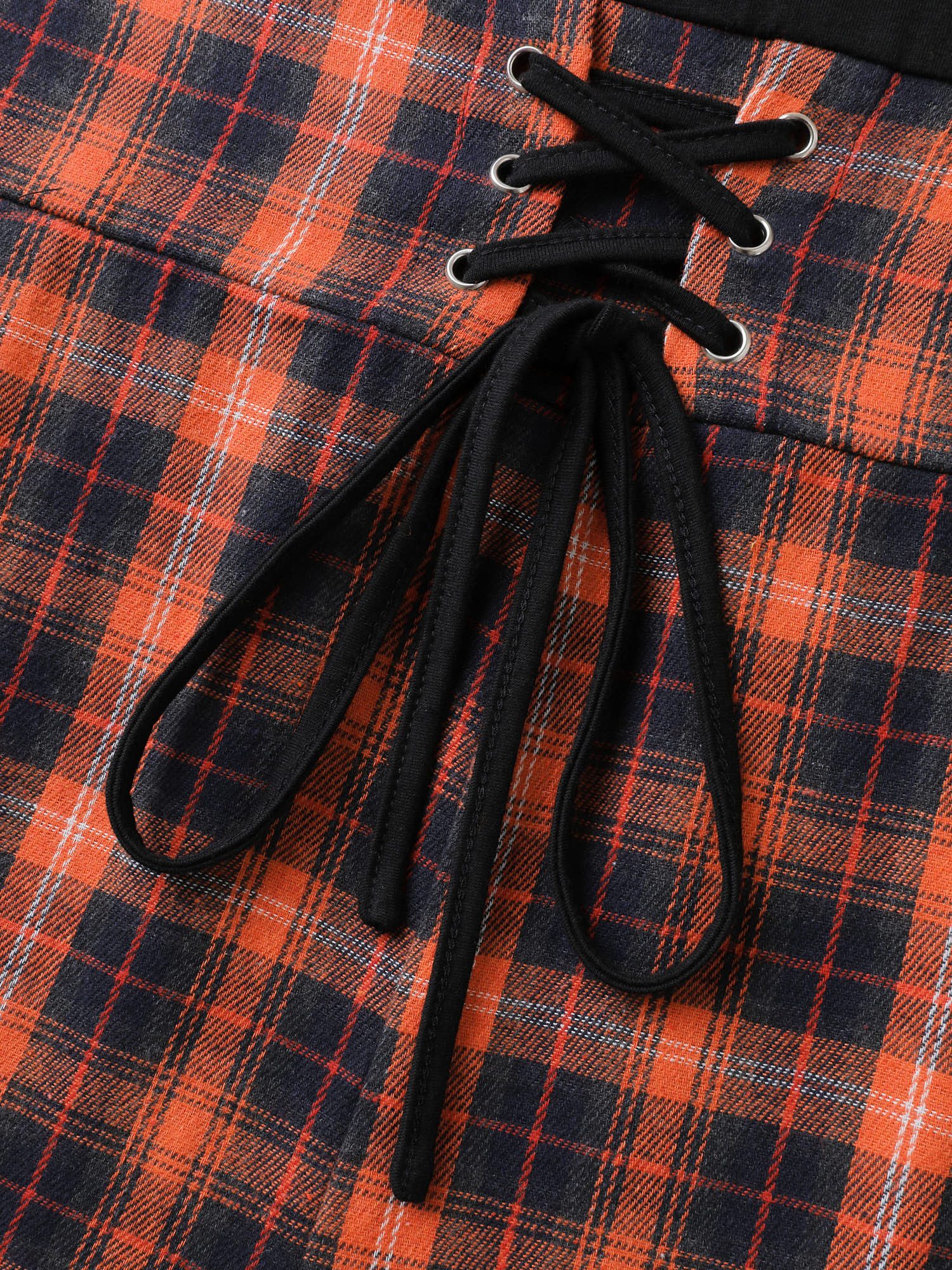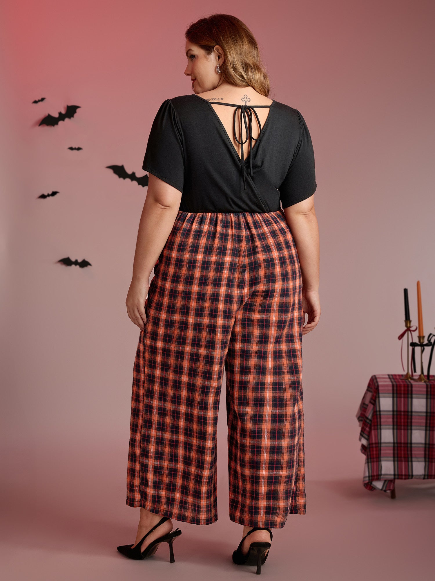 Checkered Print Pockets Cross-Tie Jumpsuit