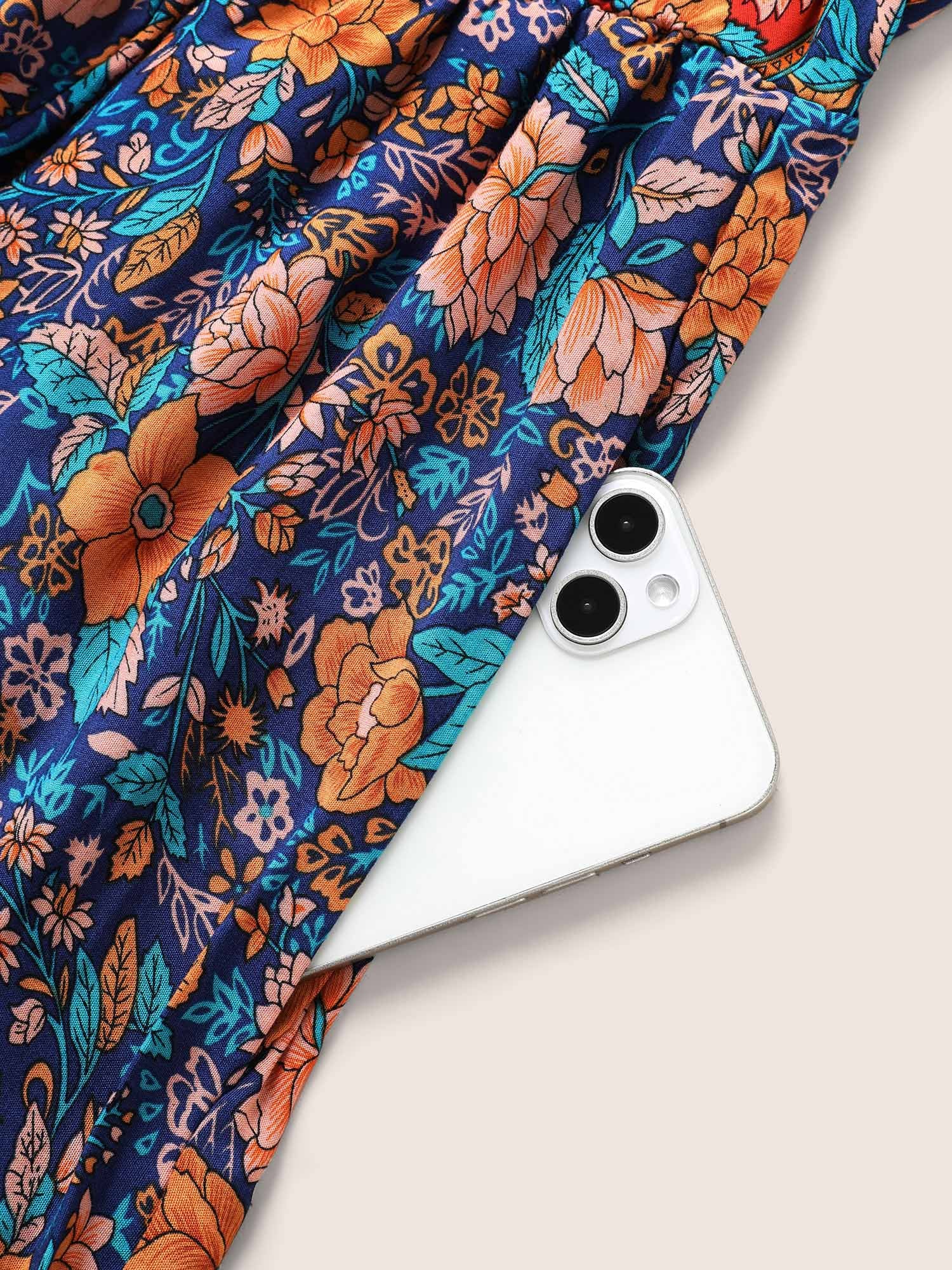 • Bandana Surplice Neck Pocket Belted Flutter Hem Maxi Dress