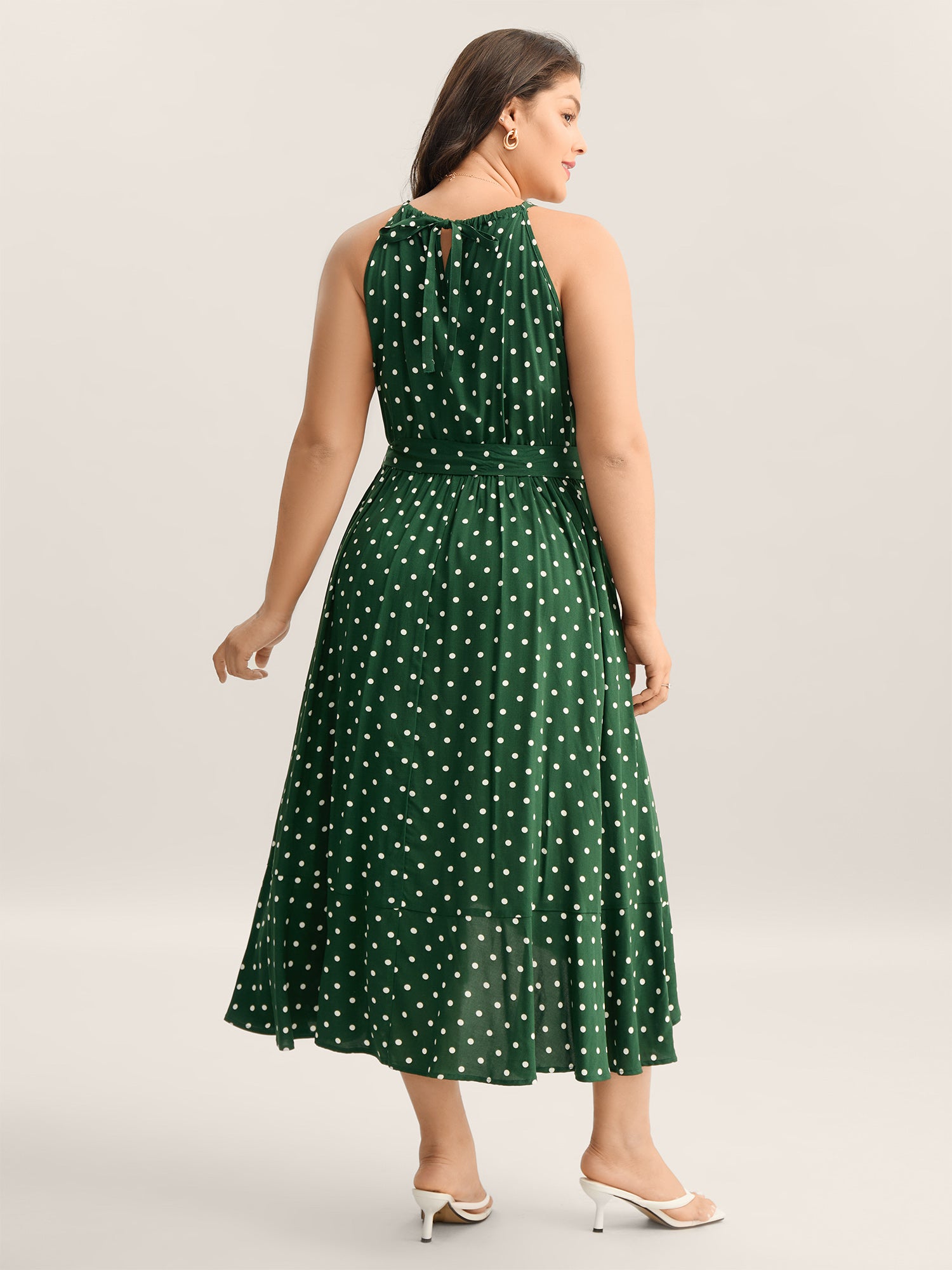 Polka Dots Halter Neck Belted Midi Dress