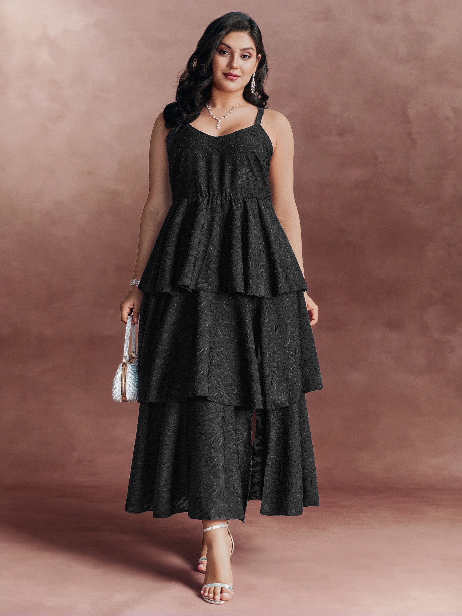 Shop Sensational Jacquard Tiered Slit Maxi Dress now and redefine your style with confidence at BloomChic. Tailored for mid and plus-size women. This trendy Dress, sizes 10-30. You can never go wrong with BloomChic Dresses. Color:Black;Style_2:Formal;Neckline:V-neck;Sleeve Type:Sleeveless;Prints:Synthetic texture;Details:Slit, Texture;Pocket:Side seam pocket;Belt:No-belt;Closure Type:Non