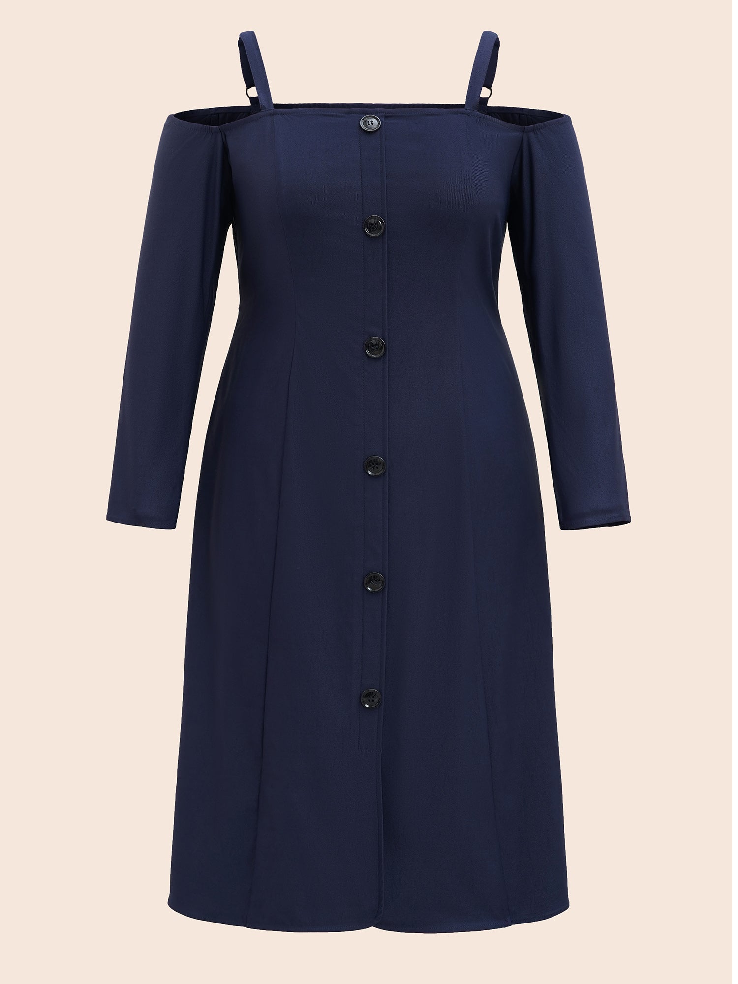 Shop Stretch Woven One-Shoulder Midi Dress now and redefine your style with confidence at BloomChic. Tailored for mid and plus-size women. This trendy Dress, sizes 10-30. You can never go wrong with BloomChic Dresses. Season:Fall;Color:DarkBlue;Style:At the Office;Neckline:One-shoulder neck;Sleeve Type:Regular Sleeve;Prints:Non;Details:Button;Pocket:No-pocket;Belt:No-belt;Closure Type:False placket