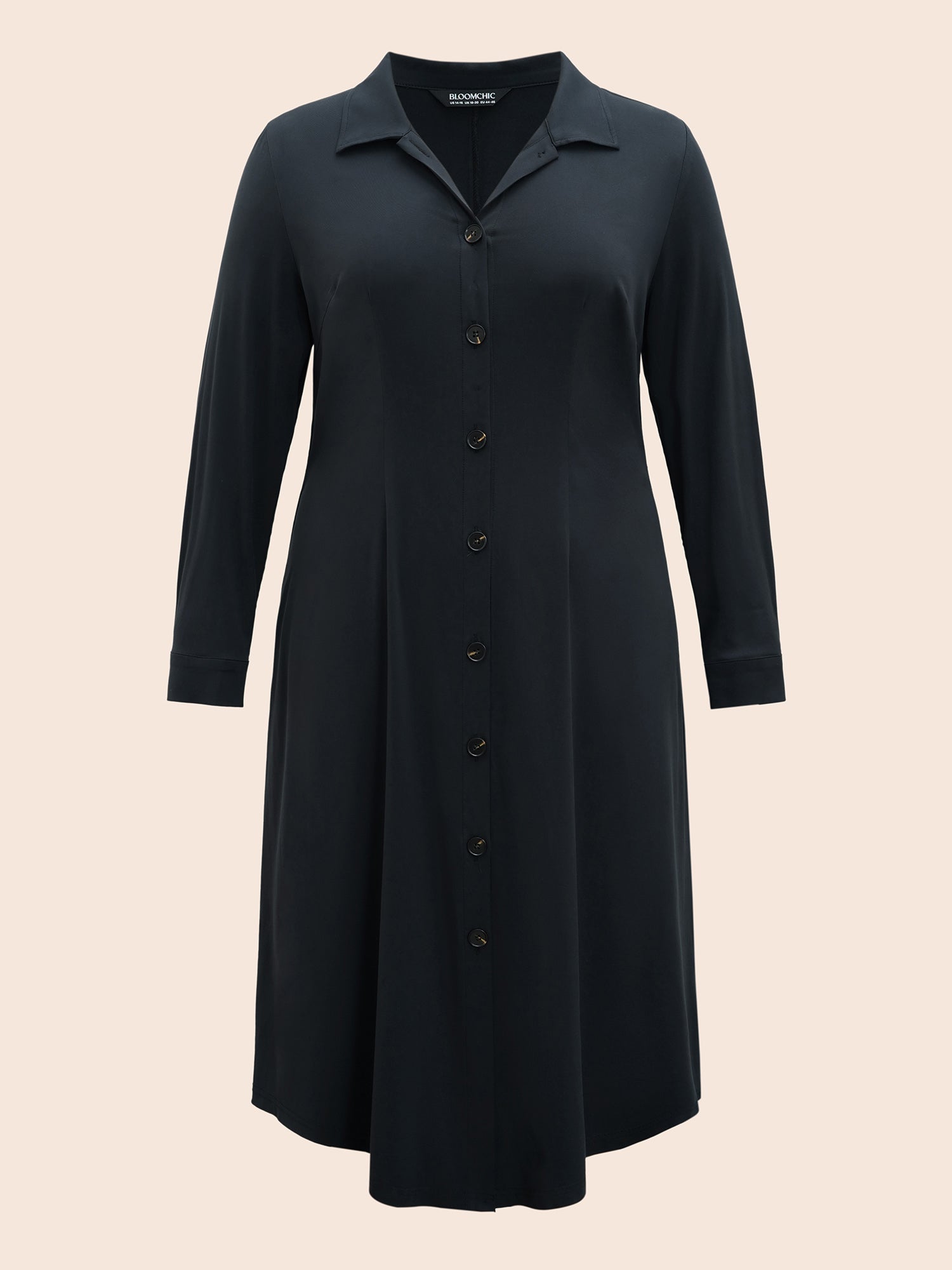 Shop Stretch Woven Structured Midi Dress now and redefine your style with confidence at BloomChic. Tailored for mid and plus-size women. This trendy Dress, sizes 10-30. You can never go wrong with BloomChic Dresses. Season:Fall;Color:Midnight;Style:At the Office;Neckline:Shirt collar;Sleeve Type:Regular Sleeve;Prints:Non;Details:Button, Slit;Pocket:No-pocket;Belt:No-belt;Closure Type:Open front with closure