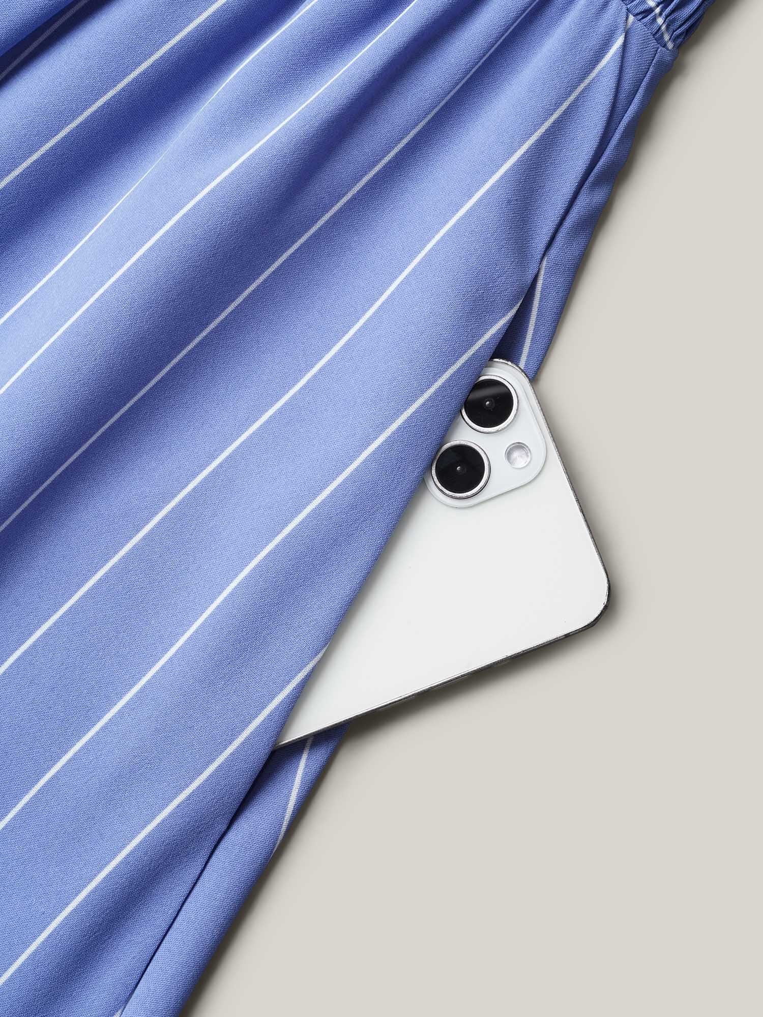 Striped Shirred Flutter Sleeve Midi Dress