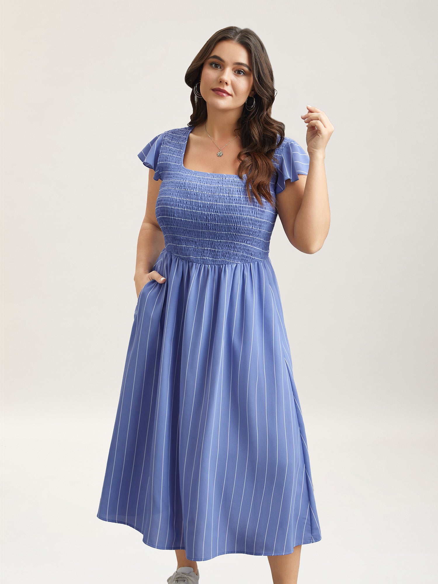 Shop Striped Shirred Flutter Sleeve Midi Dress at BloomChic. Plus Size Clothing & Plus Size Daily Dresses. BloomChic is a digital-first fashion and lifestyle destination for modern women sizes 10-30.