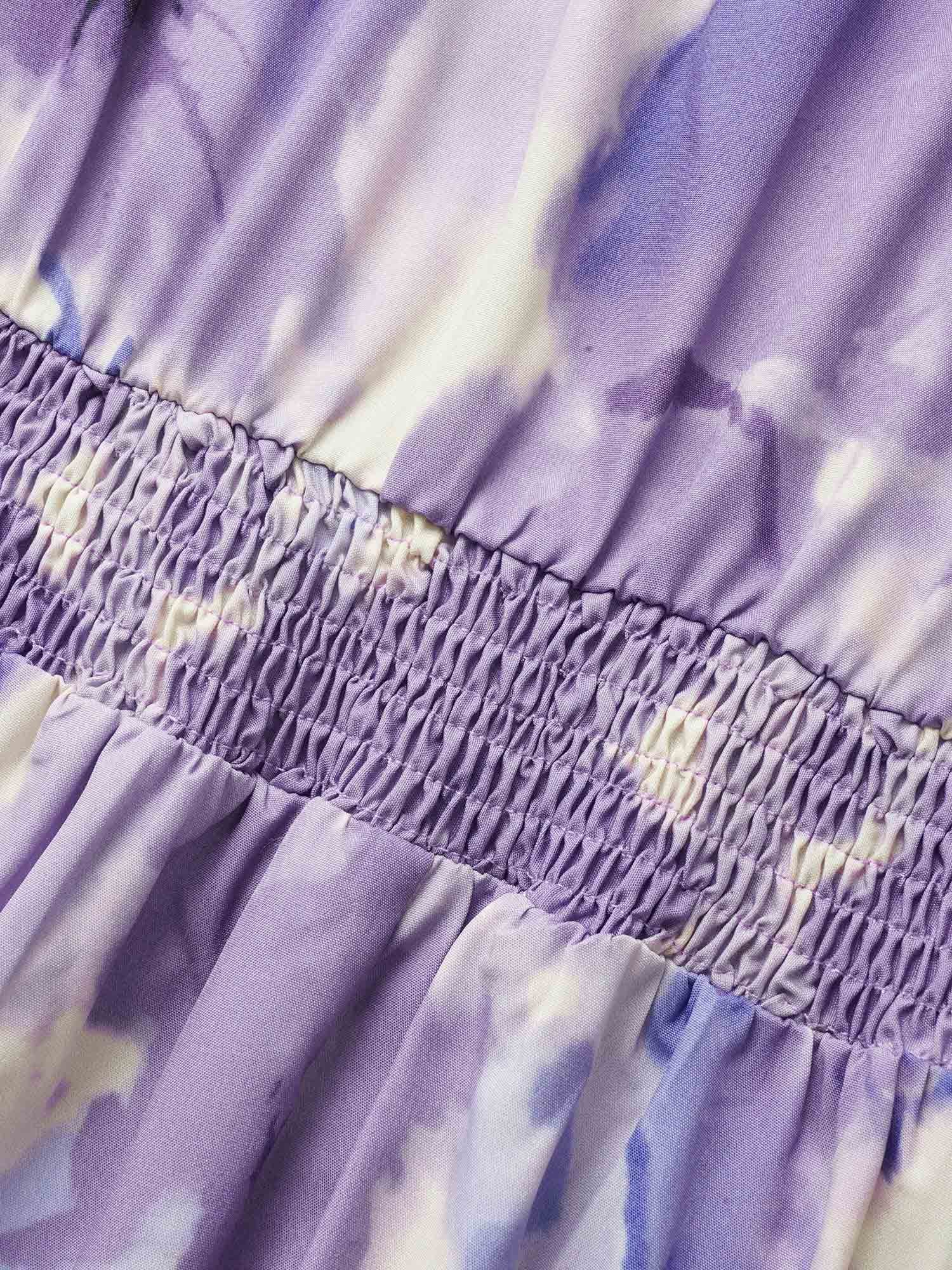 Watercolor Floral Bubble Hem Pockets Dress