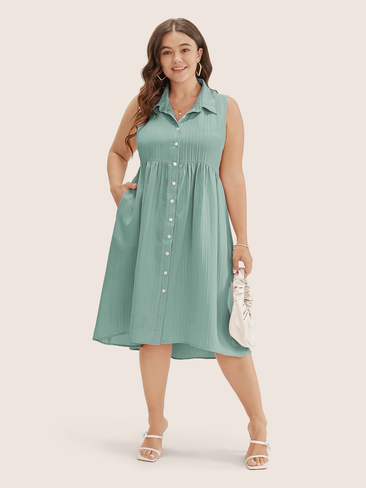 Classic Woven Inner Pleated Midi Dress