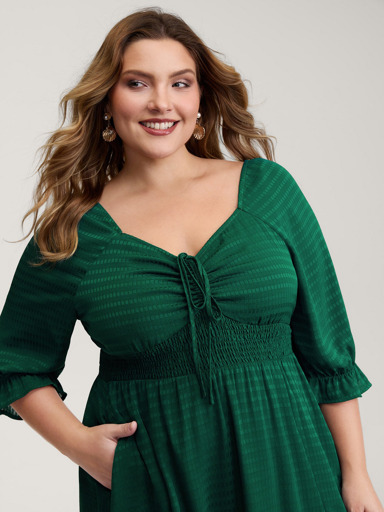 Textured Floral Shirred Waist Knee-Length Dress