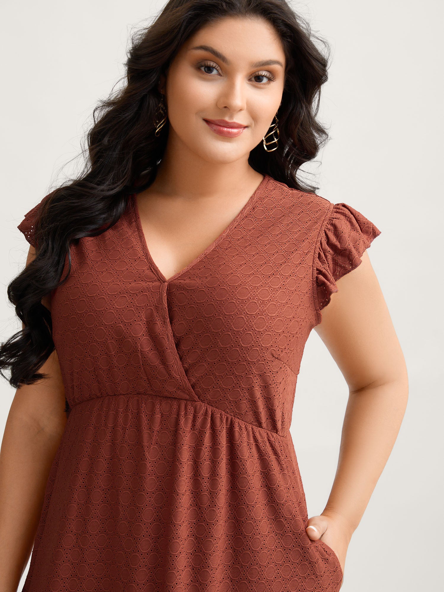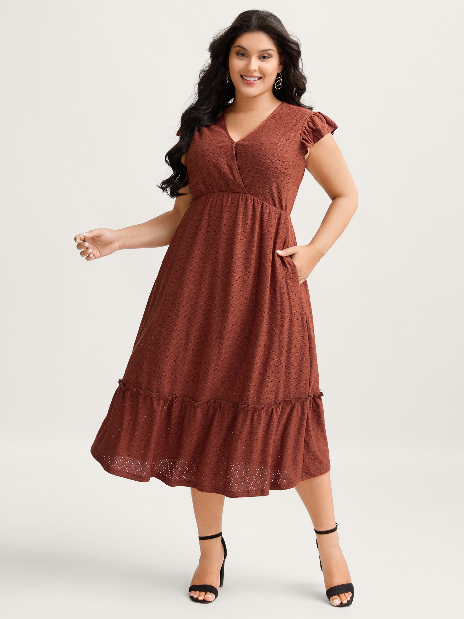 Textured Flutter Sleeve Tiered Midi Dress