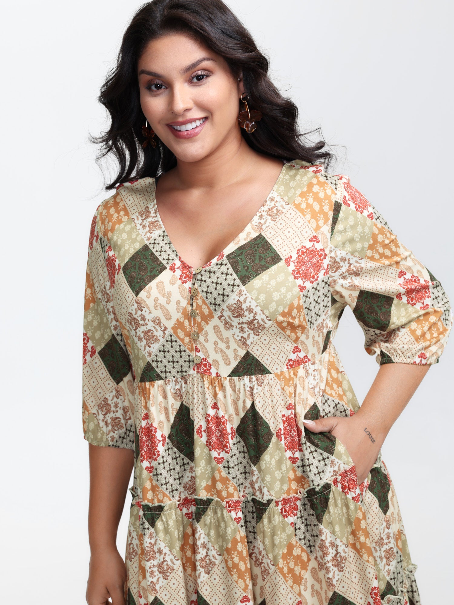 Handmade Block Print Tiered Midi Dress