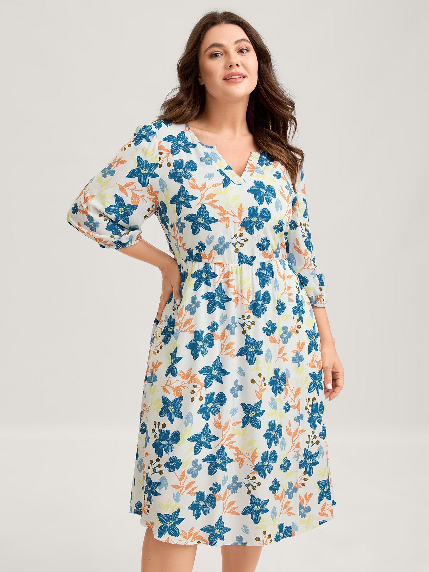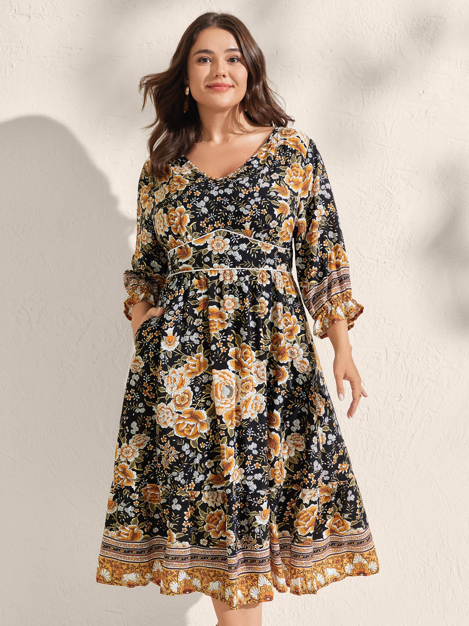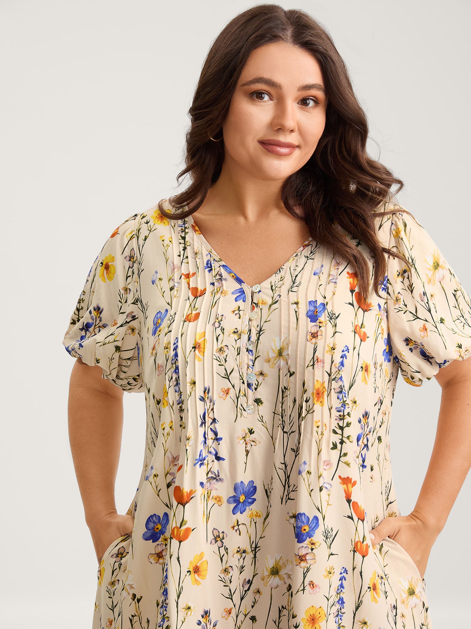 Floral Print Bust Ease Pockets Midi Dress