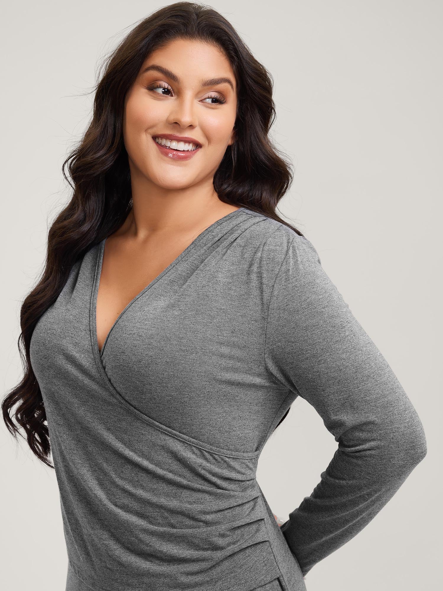 Wrap Stretchy Long Sleeve Knit Maxi Dress