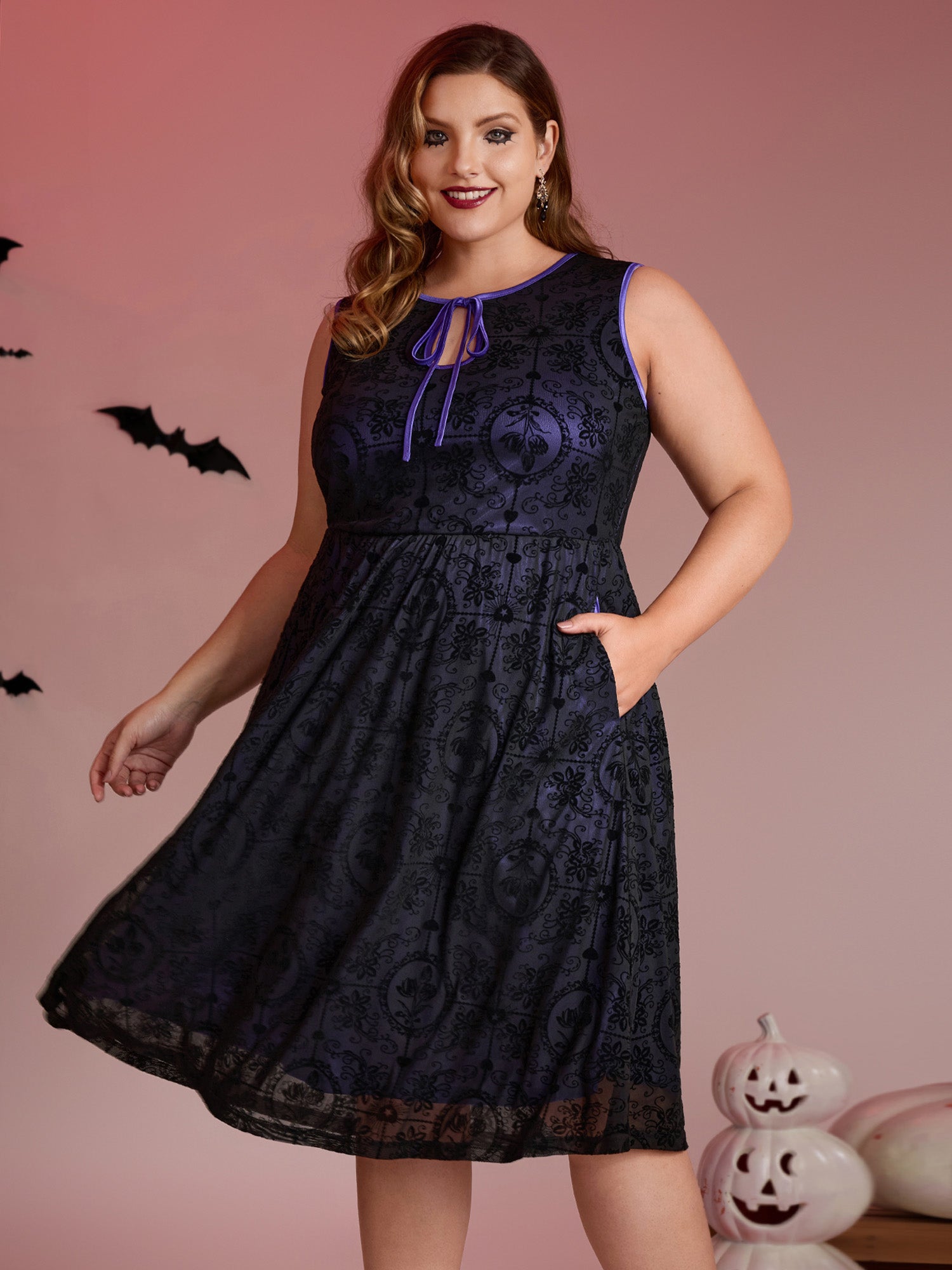 Elastic Flocked Mesh Contrast Lined Midi Dress