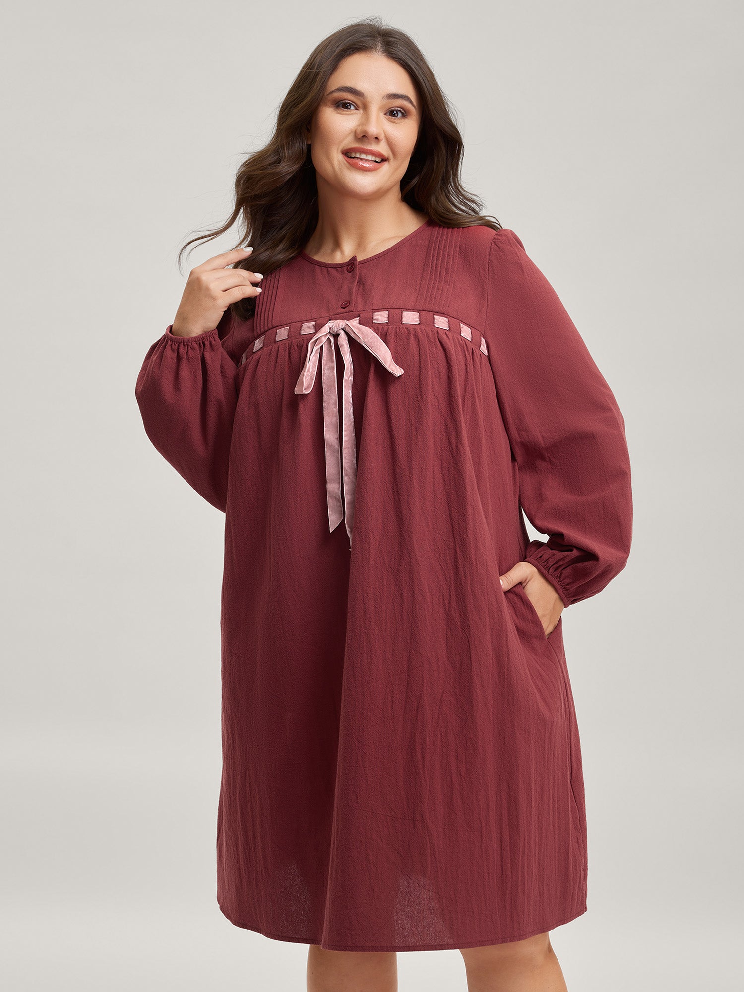 Pure Cotton Adjustable Belt Placket Midi Dress