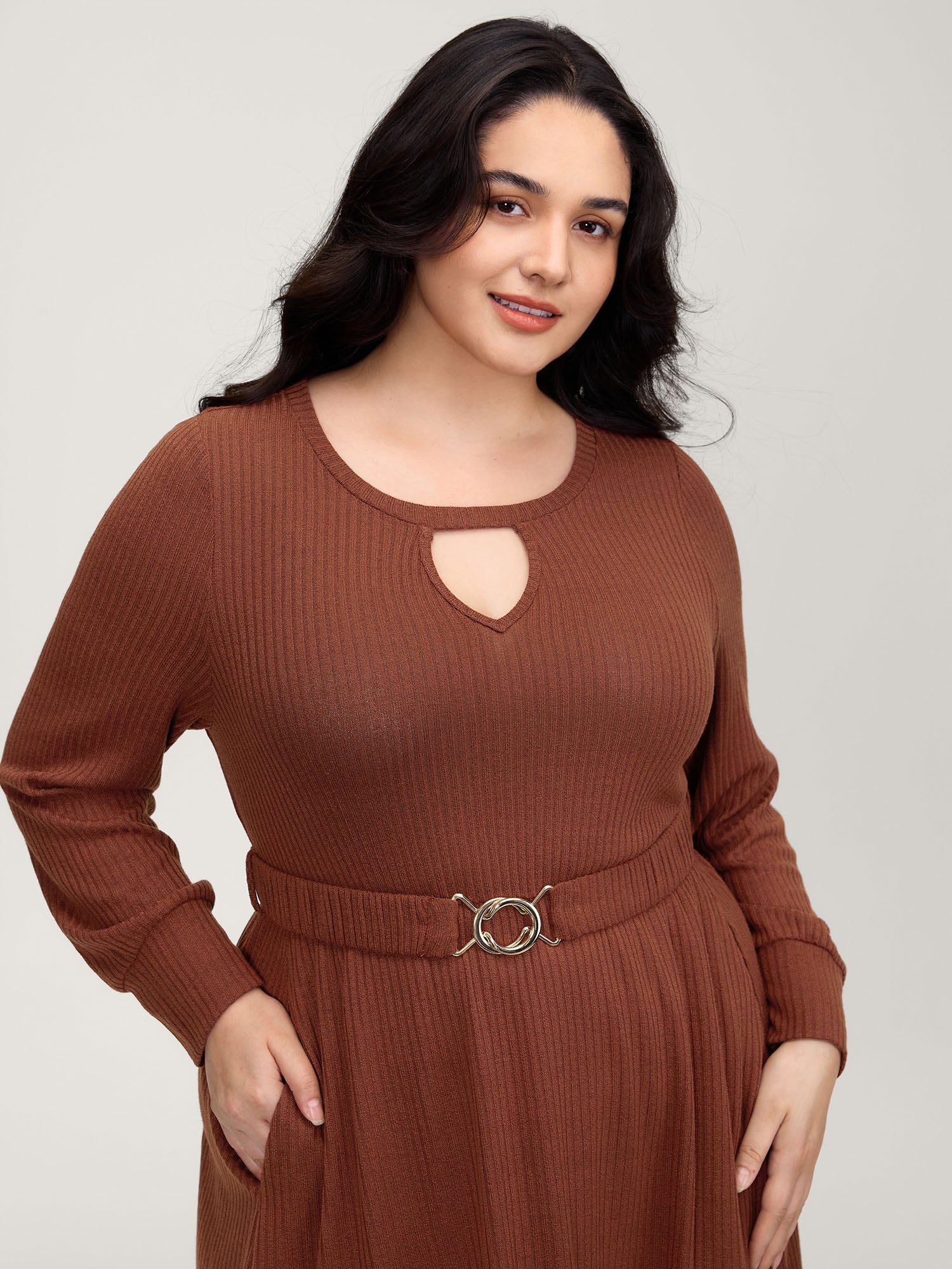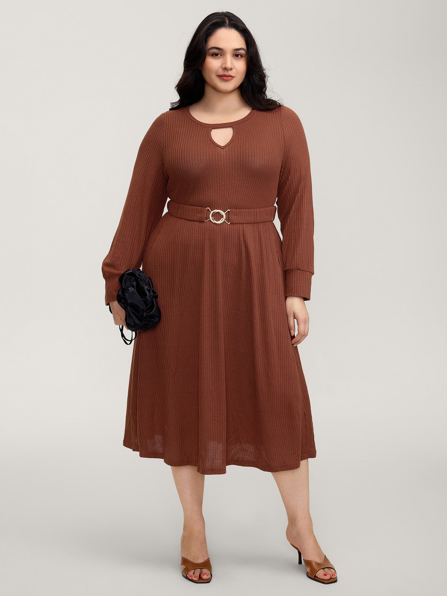 Heather Ribbed Stretchy Metal Buckle Maxi Dress