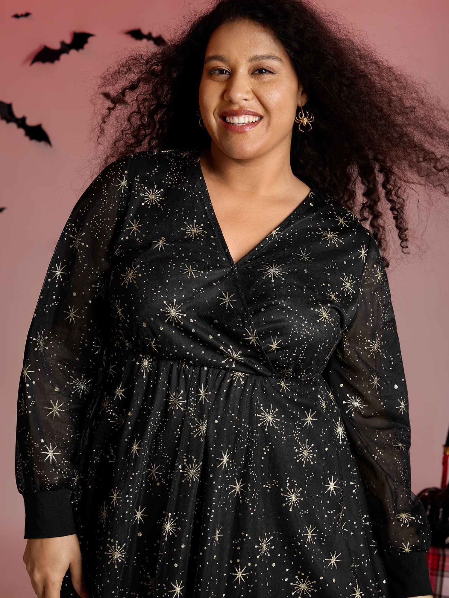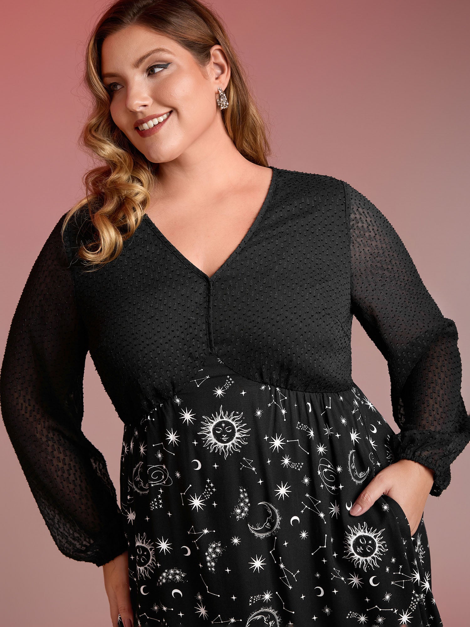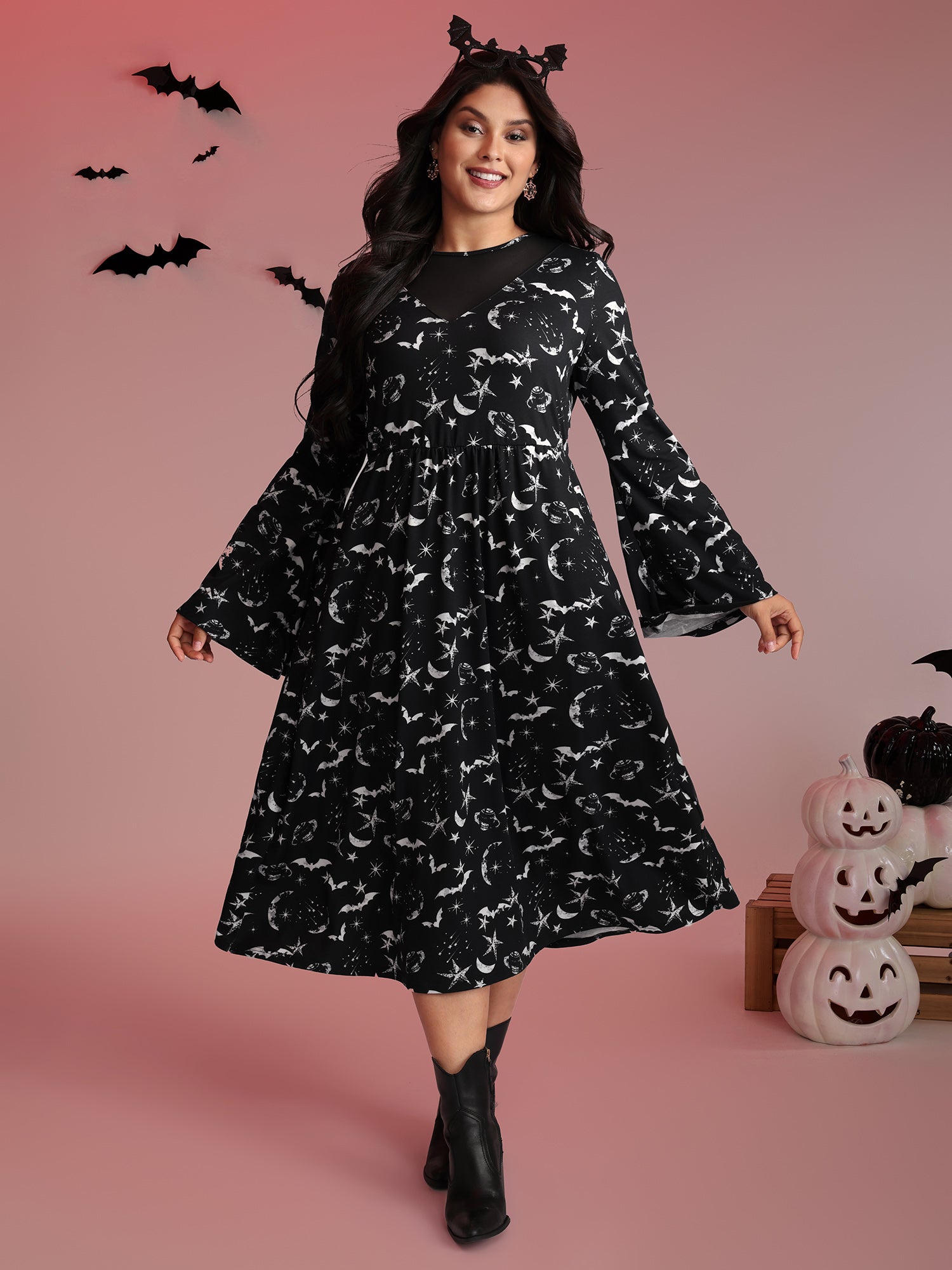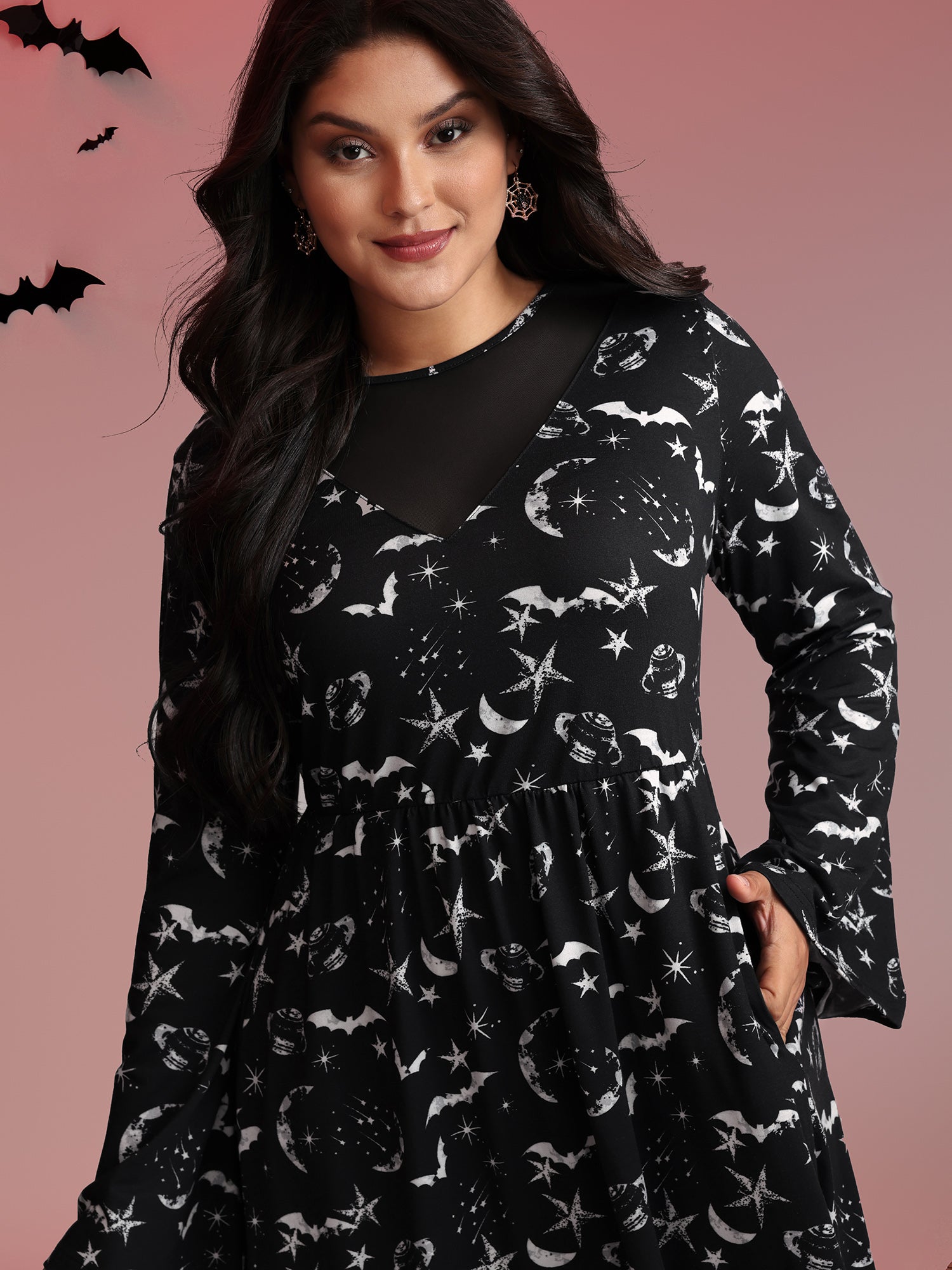 Celestial Halloween Print Sheer Pockets Maxi Dress