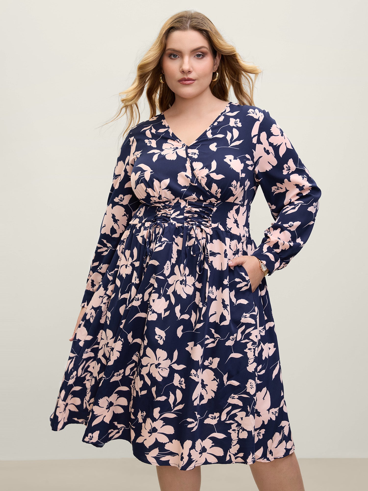 Surplice Neck Split Side Pockets Midi Dress