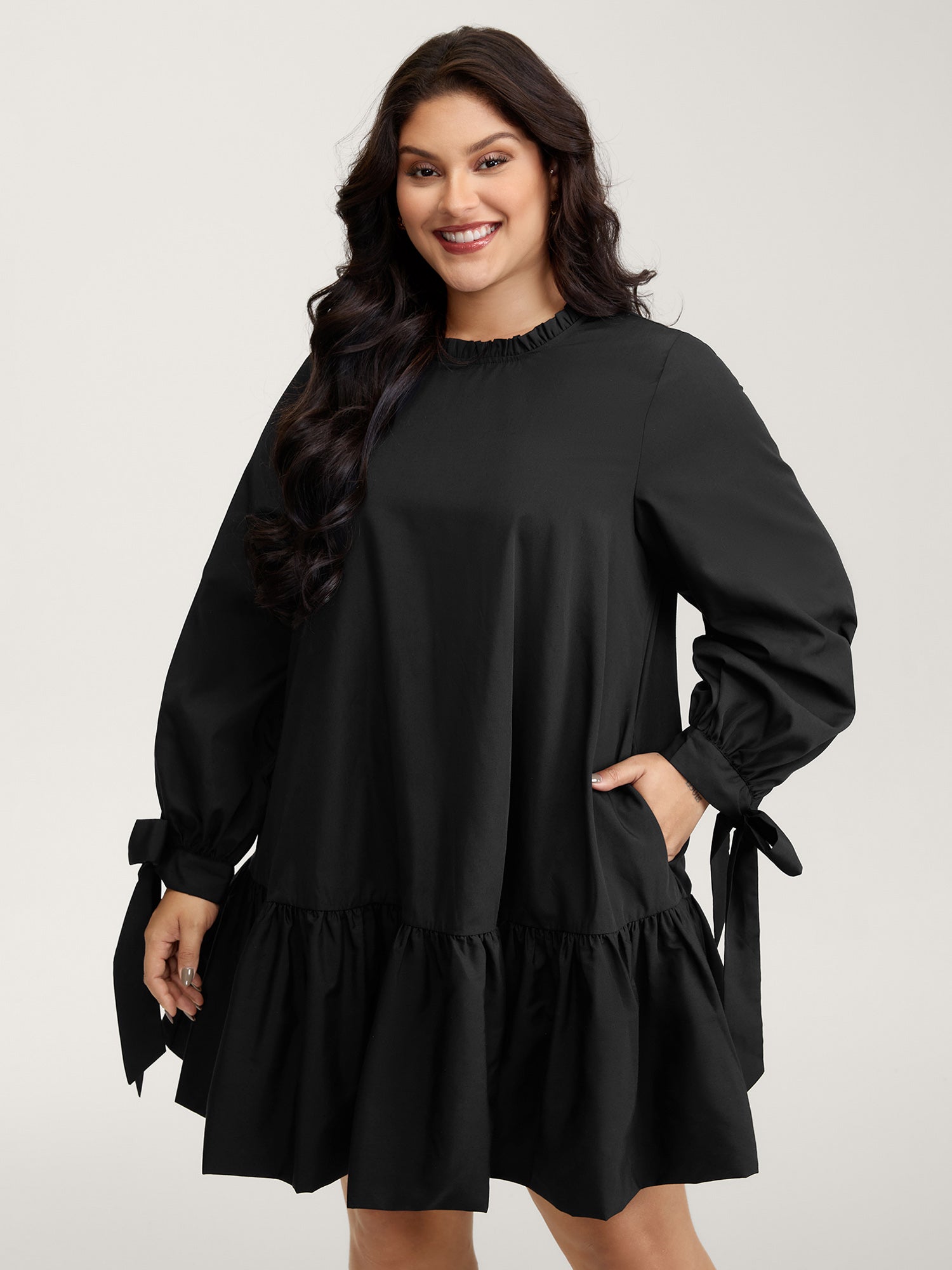 Sleeve-Tie Relaxed-Fit Knee-Length Dress